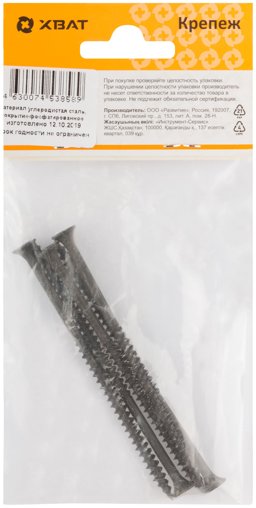 Саморезы черные по гипроку к металлу 4,8 х 95 (фасовка 5 шт.)