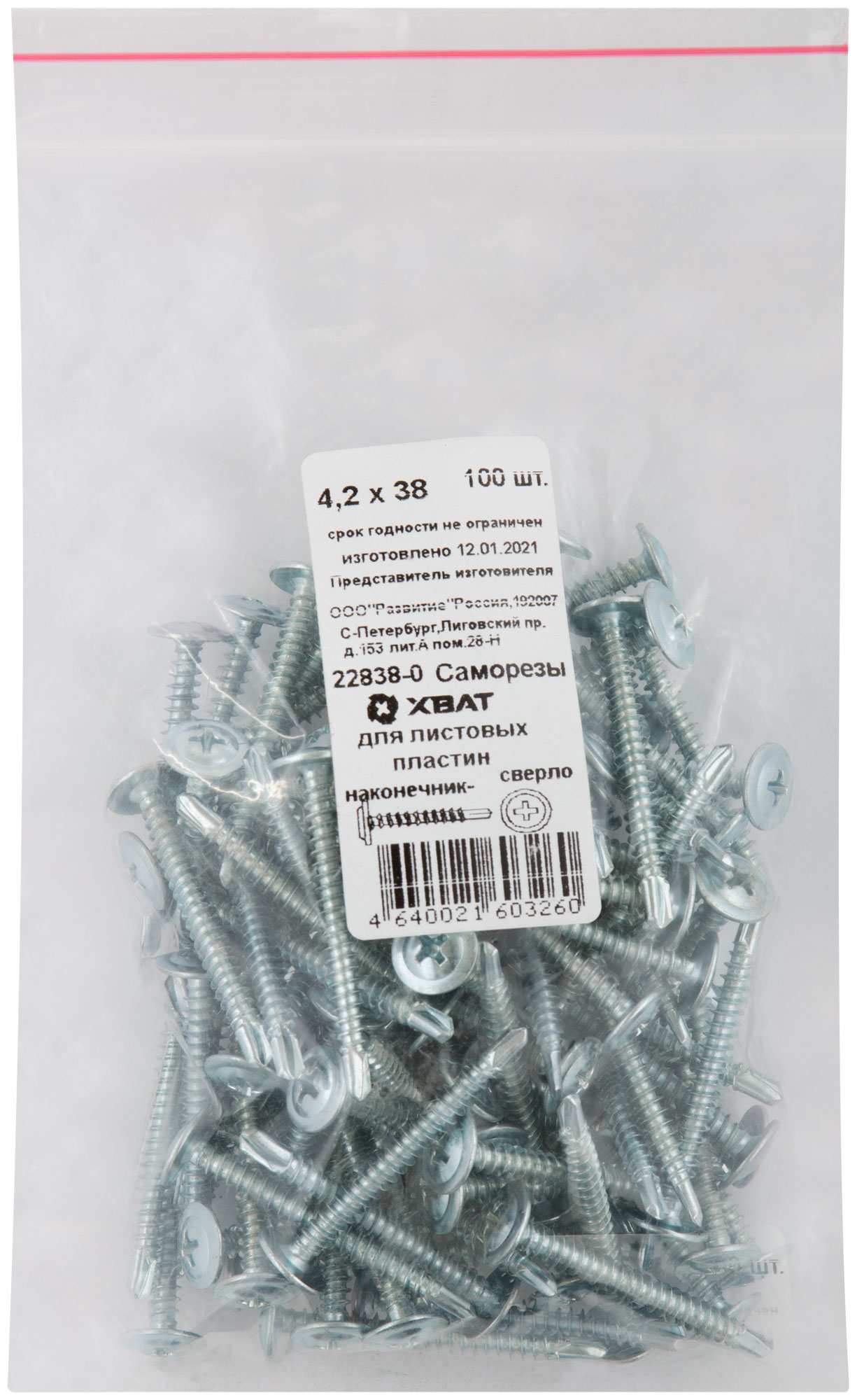 Саморезы для листовых пластин, наконечник-сверло 4,2 х 38 100 шт. Фасовка
