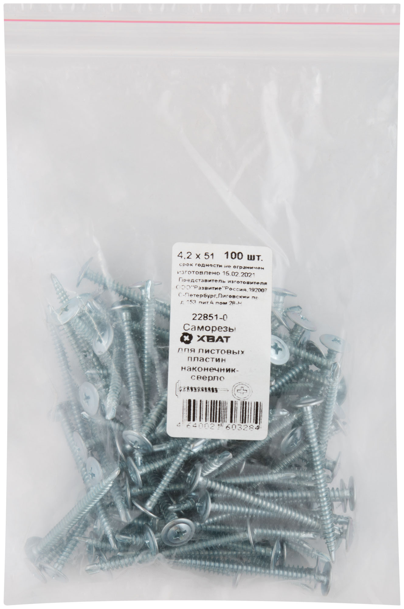 Саморезы для листовых пластин, наконечник-сверло 4,2 х 51 100 шт. Фасовка