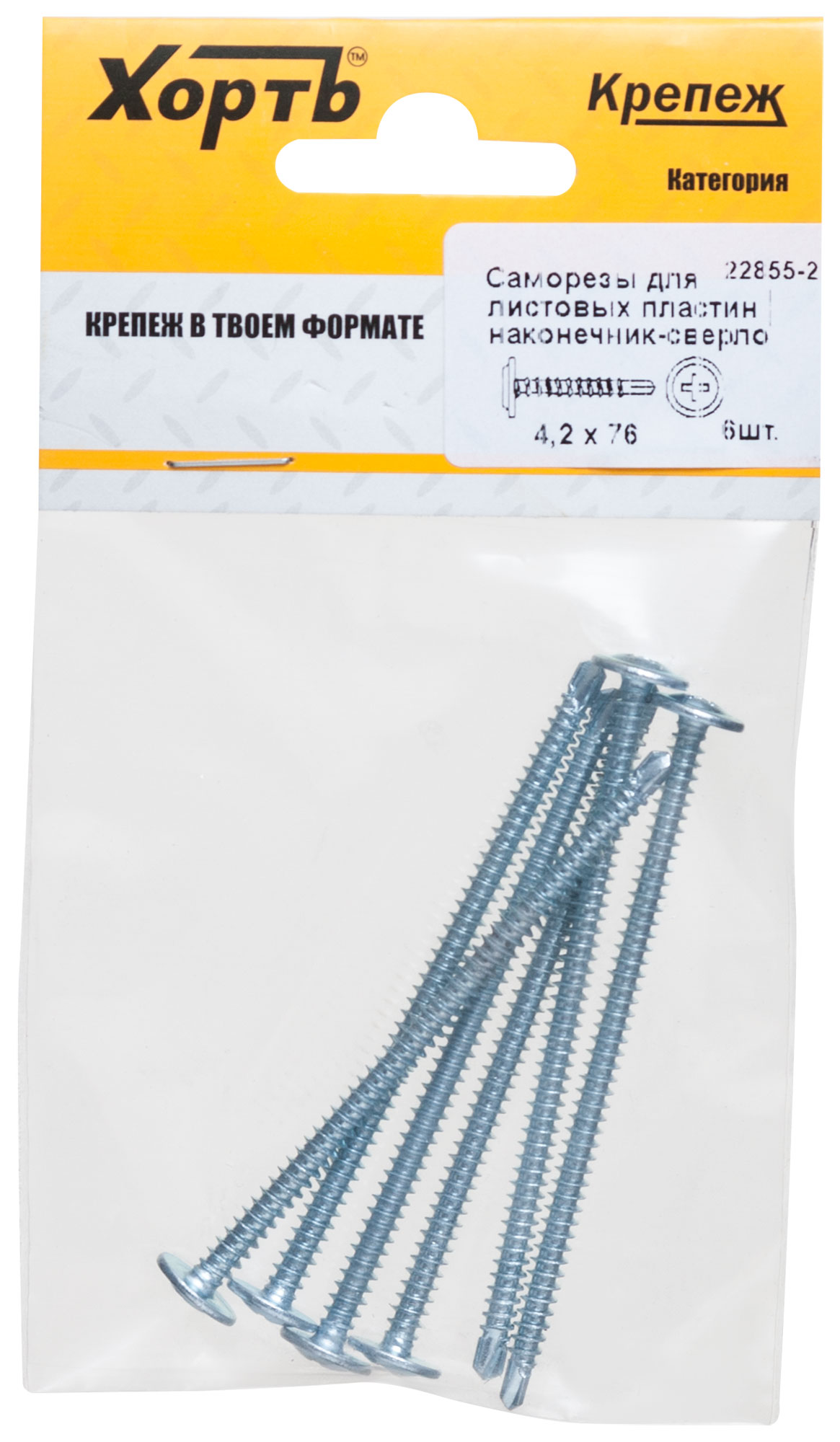 Саморезы для листовых пластин, наконечник-сверло 4,2 х 76 (фасовка 6 шт.)
