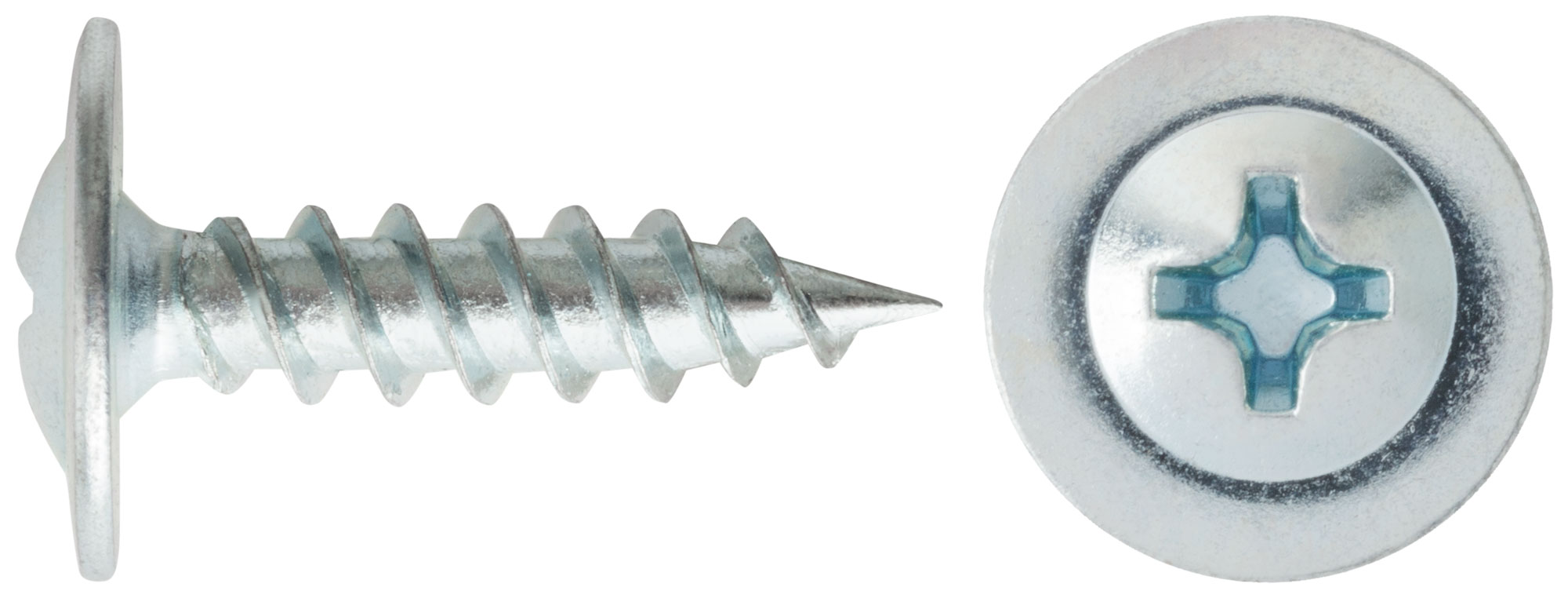 Стальные оцинкованные саморезы по металлу с прессшайбой для крепления тонких листов к металлическим основаниям. Прессшайба обеспечивает прочное соединение. При работе с листами металла толщиной 0,9 мм-6 мм необходимо заранее просверлить отверстие. Шлиц Pн2