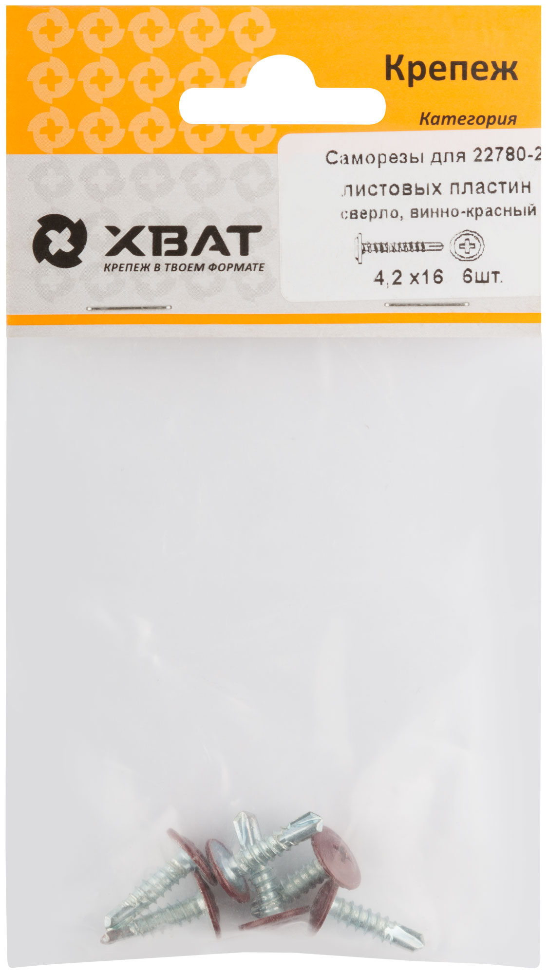 Саморезы для листовых пластин, сверло 4,2 х 16 RAL 3005 винно-красный (фасовка 6 шт.)