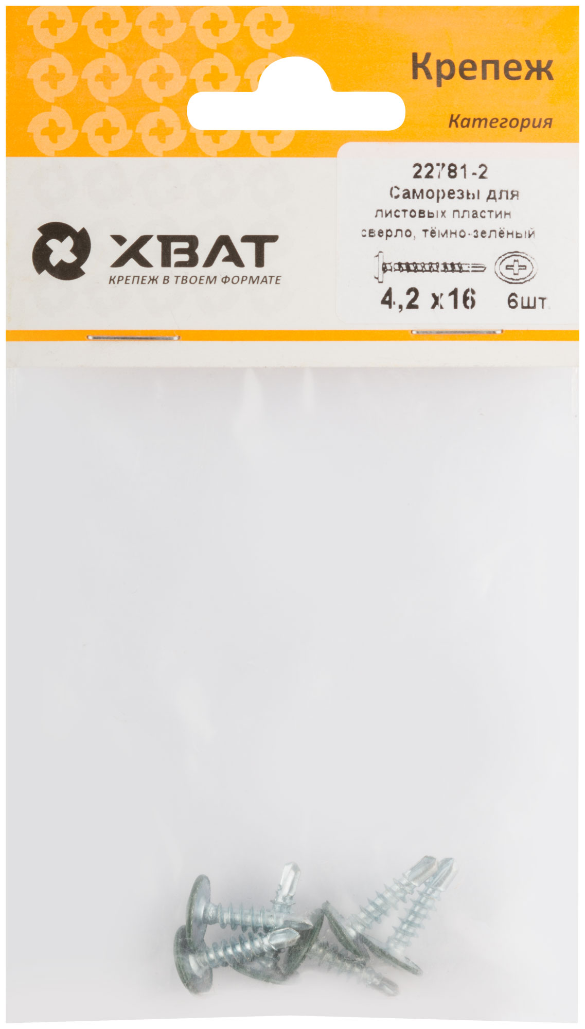 Саморезы для листовых пластин, сверло 4,2 х 16 RAL 6005 темно-зеленый (фасовка 6 шт.)