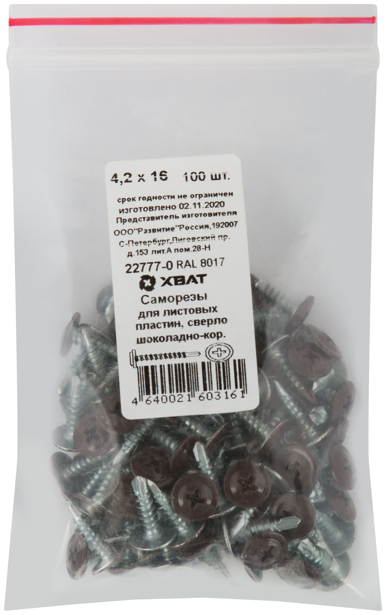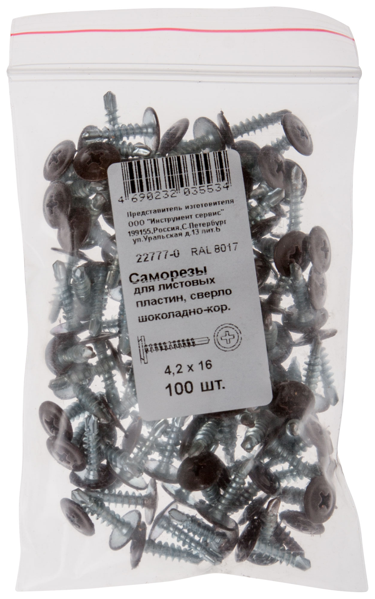 Саморезы для листовых пластин, сверло 4,2 х 16 RAL 8017 шоколадно-коричневый 100 шт. Фасовка