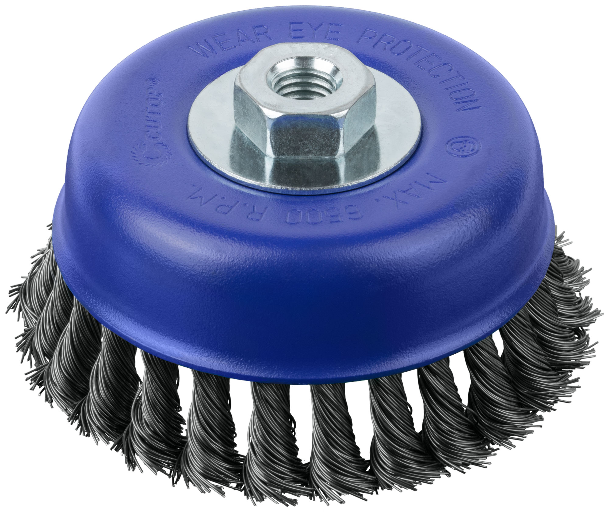 Щетка для УШМ, тип «Чашка», М14, отлично подходит для обработки больших плоскостей. Форма «Чашка» обеспечивает хорошую площадь прилегания к поверхности. Конструкция щетки оснащена усиленной гайкой с шайбой (кроме D65), которая способствует предотвращению деформации изделия. Идеальная балансировка щеток значительно продлевает срок службы инструмента. Металлическая проволока 0,5 мм. Упаковка: блистер. Упаковка: блистер.