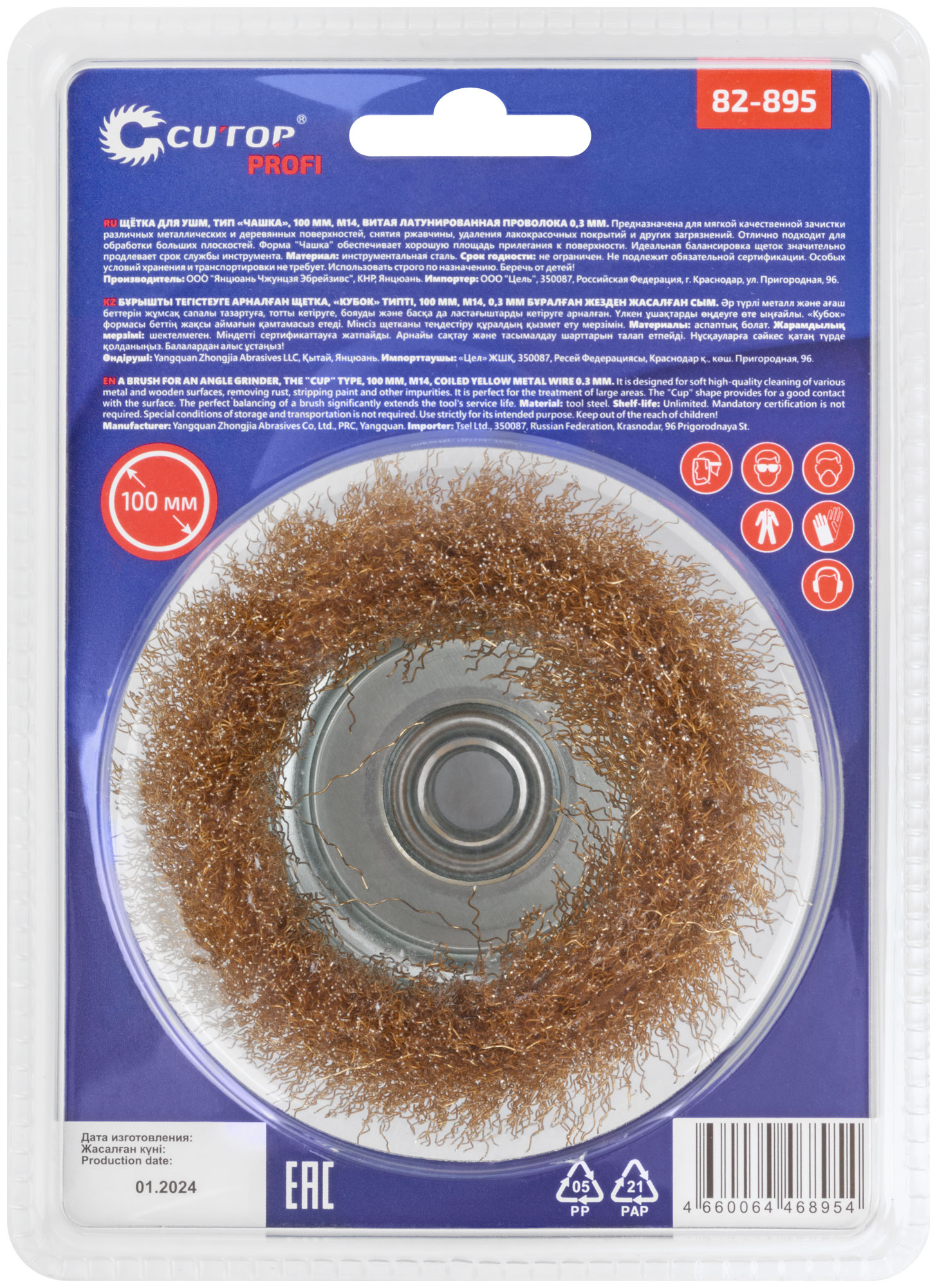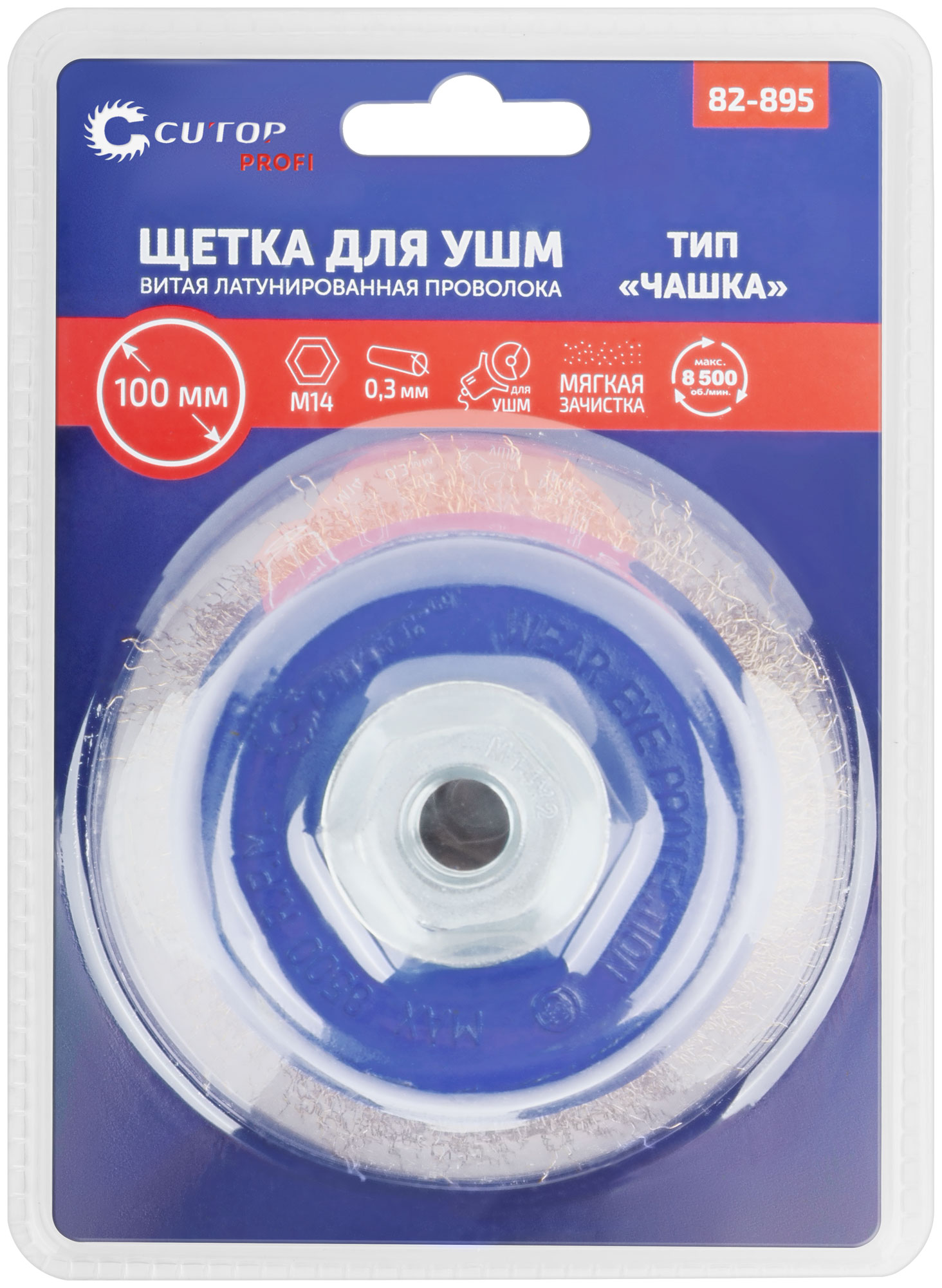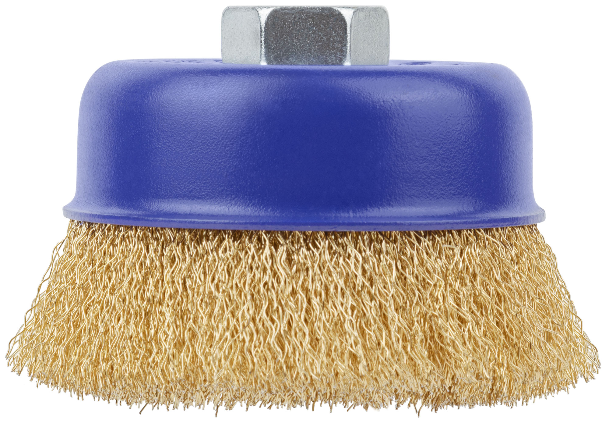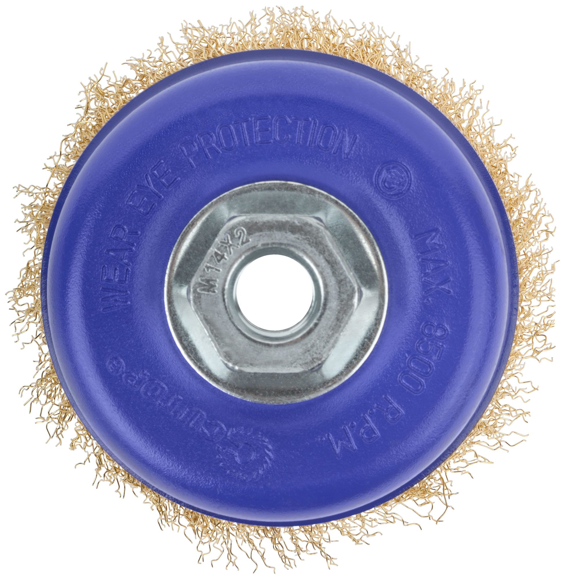 Щетка для УШМ, М14, тип "Чашка", латун. витая проволока 0,3 мм, 100 мм, блистер, CUTOP Profi