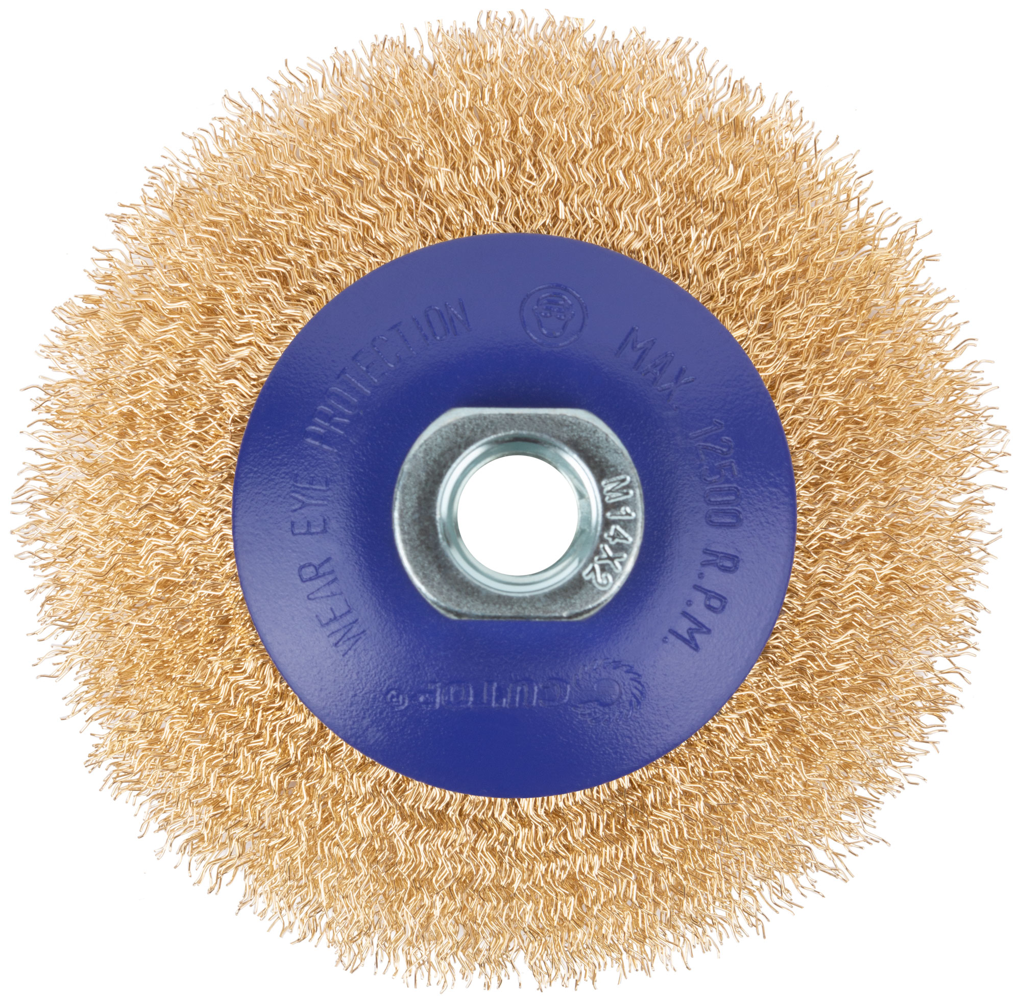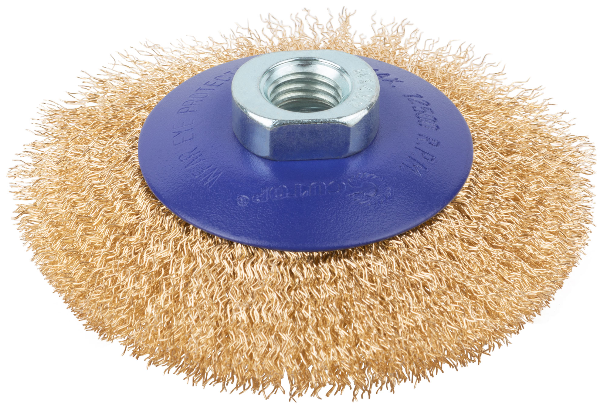 Щетка для УШМ, М14, тип "Тарелка", латун. витая проволока 0,3 мм, 100 мм, блистер, CUTOP Profi