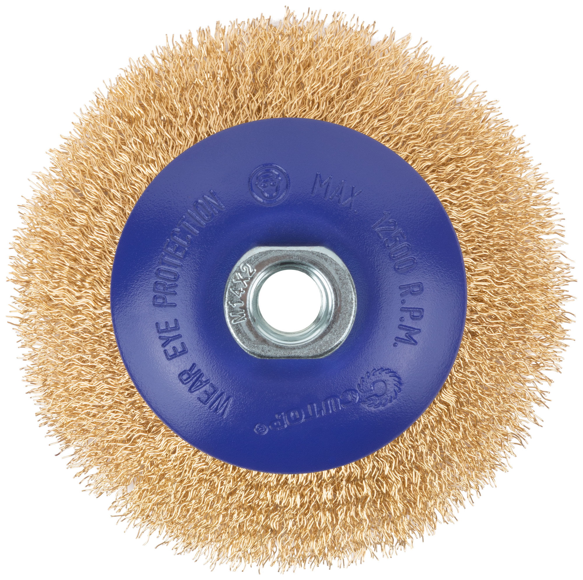 Щетка для УШМ, М14, тип "Тарелка", латун. витая проволока 0,3 мм, 115 мм, блистер, CUTOP Profi