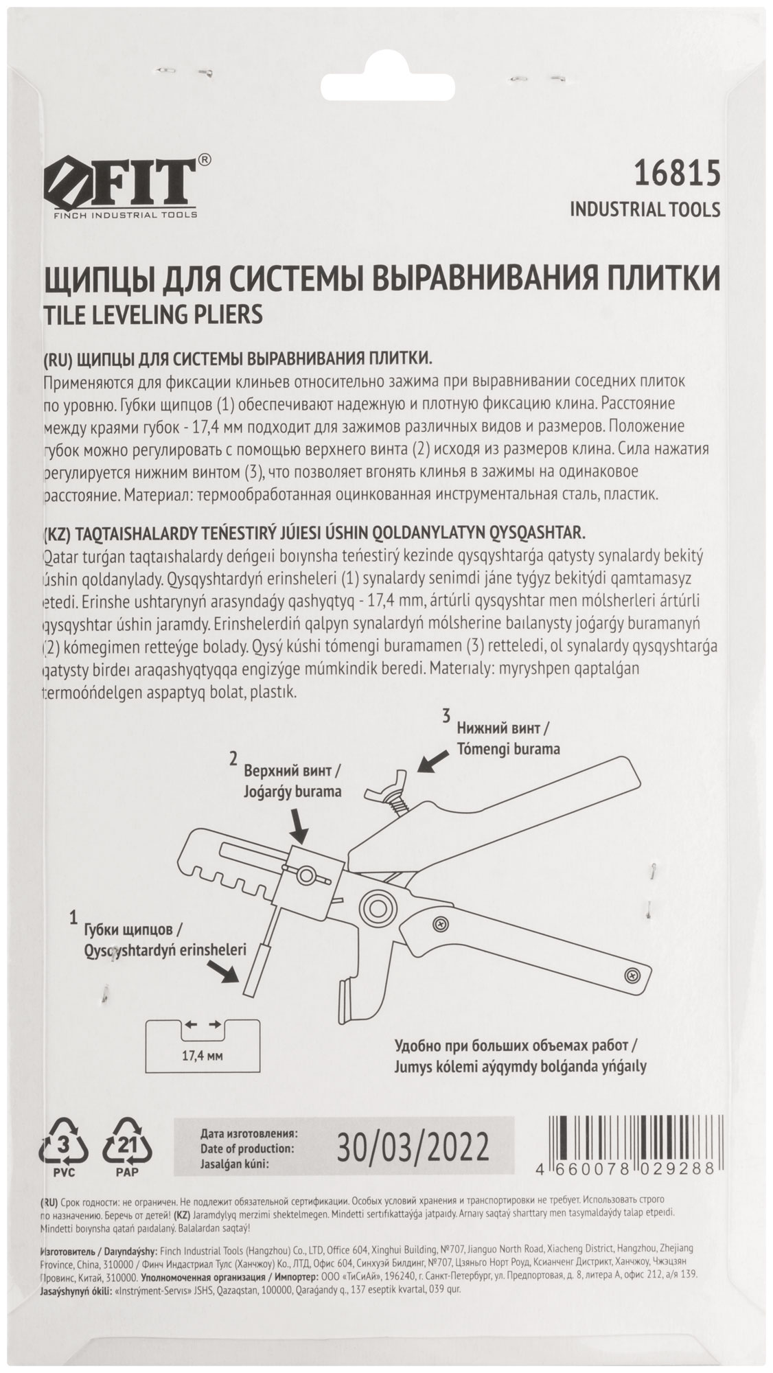 Для фиксации клиньев относительно зажима при выравнивании соседних плиток по уровню. Материал: оцинкованная инструментальная сталь, пластик. Упаковка: блистер.