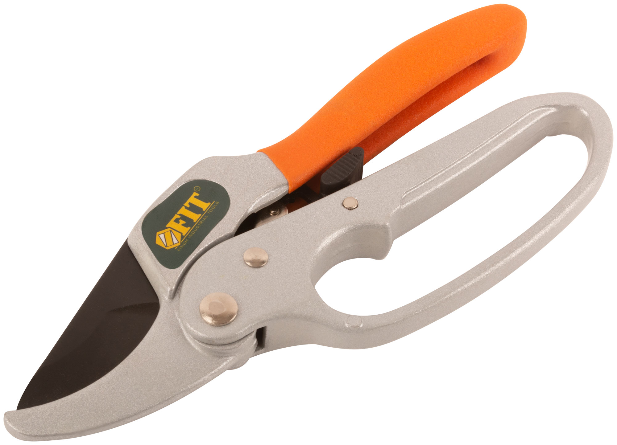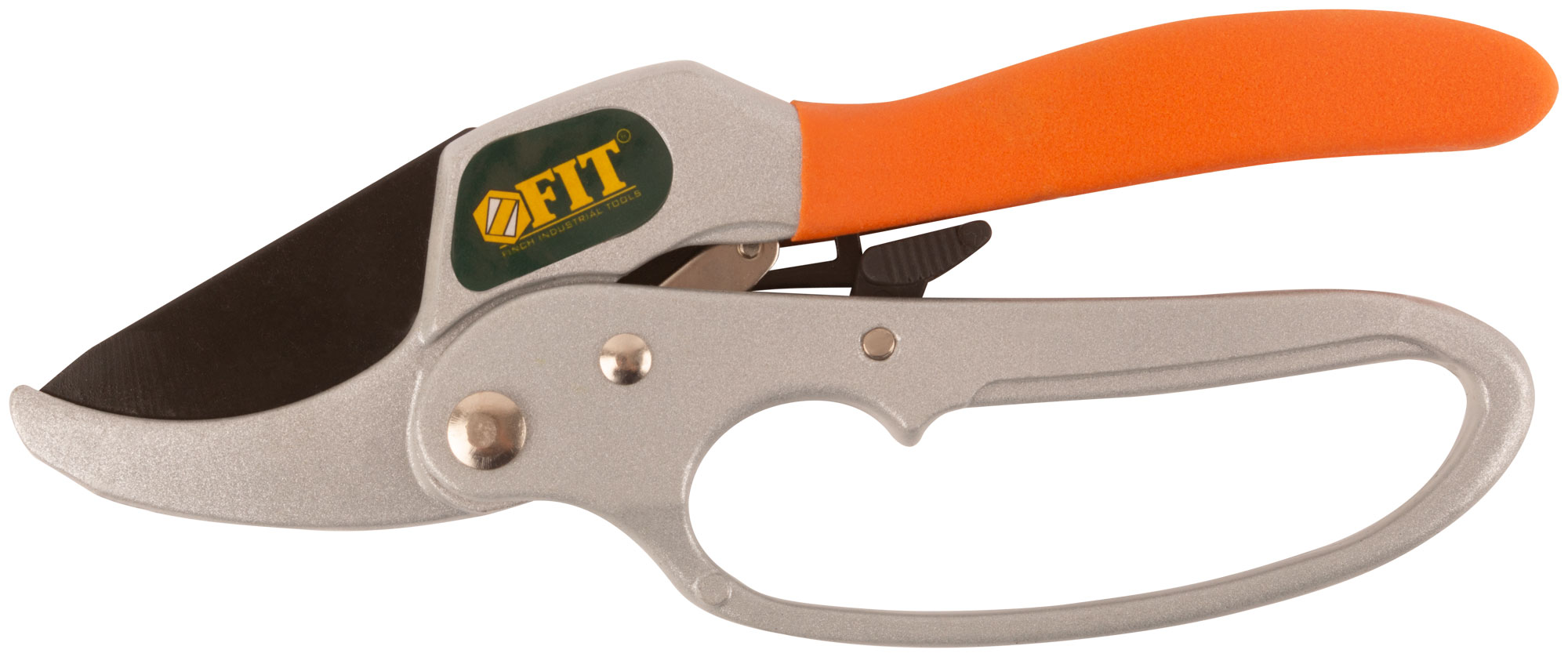 Профи. С функцией механического стопора и храповым механизмом, режущие кромки встык с упорной наковальней. Для обрезания побегов и веток толщиной до 25 мм. Материал: лезвие из высокоуглеродистой инструментальной стали с тефлоновымn покрытием, корпус и ручки из алюминиевого сплава, ПВХ накладка на ручку. Упаковка: блистер.
