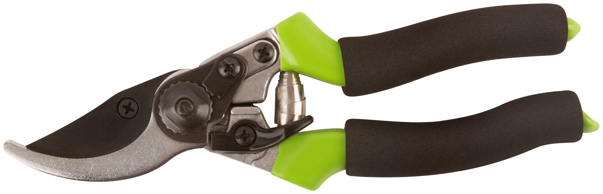Секатор, режущие кромки внахлест, тефлон.покрытие лезвий, пластик.ручки с мягкими накладками 215 мм