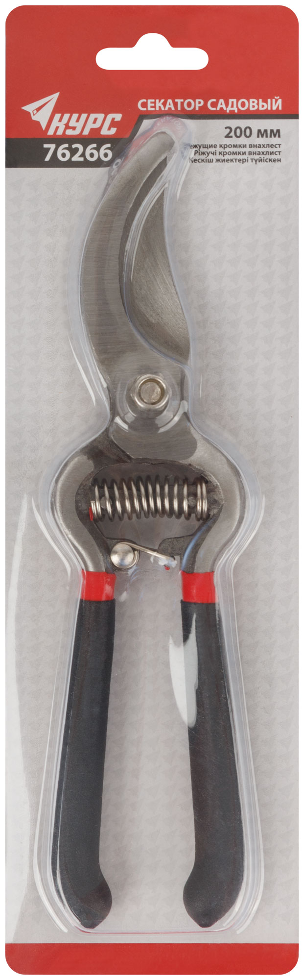 Секатор садовый, режущие кромки внахлест, цельнокованый, ПВХ покрытие ручек 200 мм