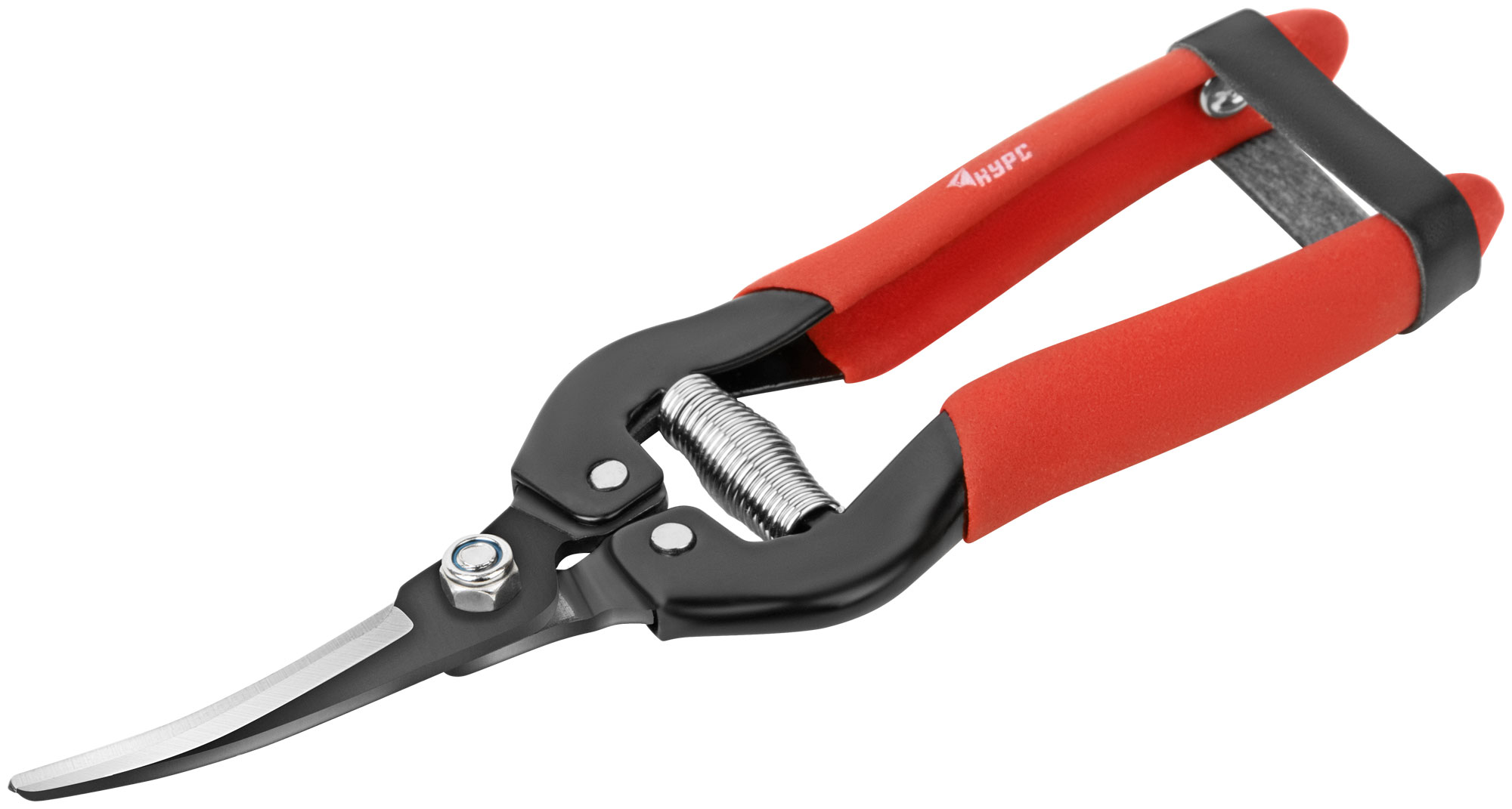 Режущие кромки внахлест. Изогнутые лезвия для работы в труднодоступных местах и более удобного реза под углом. Для обрезания побегов и стеблей цветов диаметром до 5 мм, резки бумаги, картона и прочих хозяйственных работ. Материал: лезвия из инструментальной стали с черненым покрытием, ПВХ накладки на ручки. Упаковка: блистер.