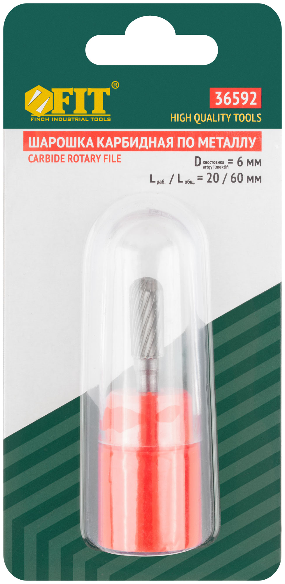 Шарошка карбидная Профи, штифт 6 мм, тип «С», цилиндрическая со сферическим наконечником, 8х20х60 мм