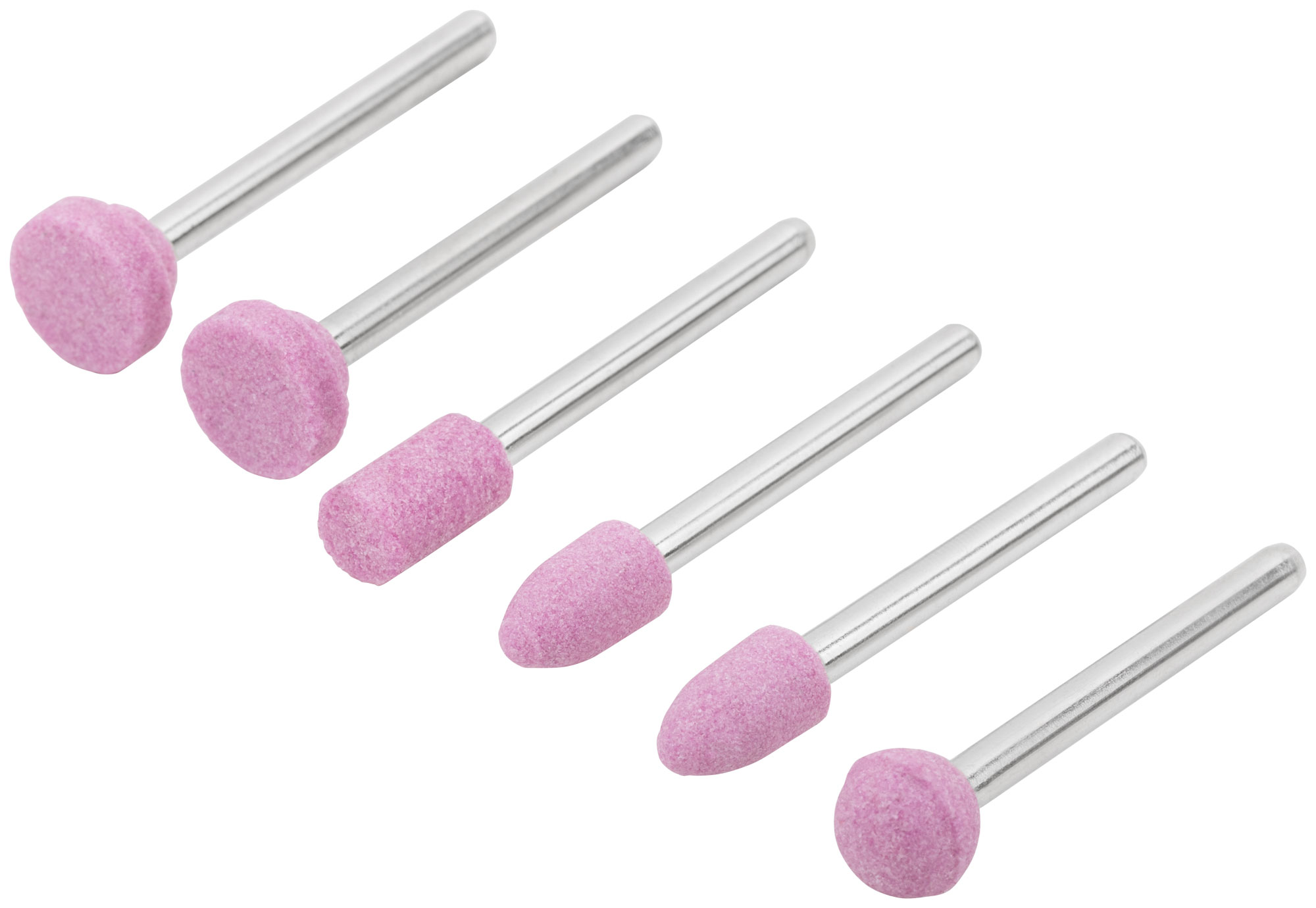 Для гравировальной машины. В наборе 6 шт. Предназначены для шлифовки изделий из стали и цветных металлов. Зернистость: P120. D хвостовика=3,1 мм. Материал: хвостовик из инструментальной стали, корунд. Упаковка: блистер.