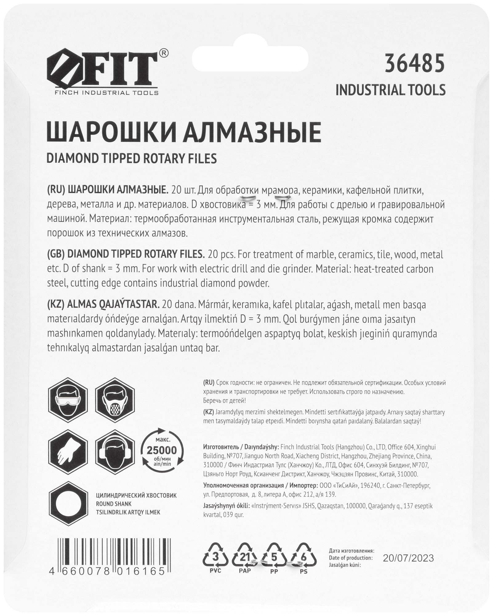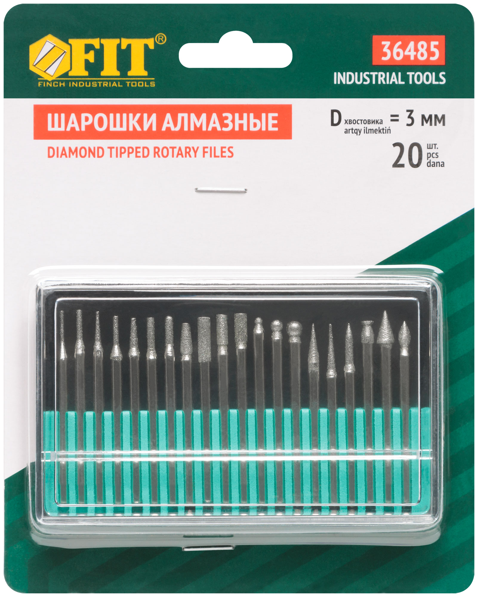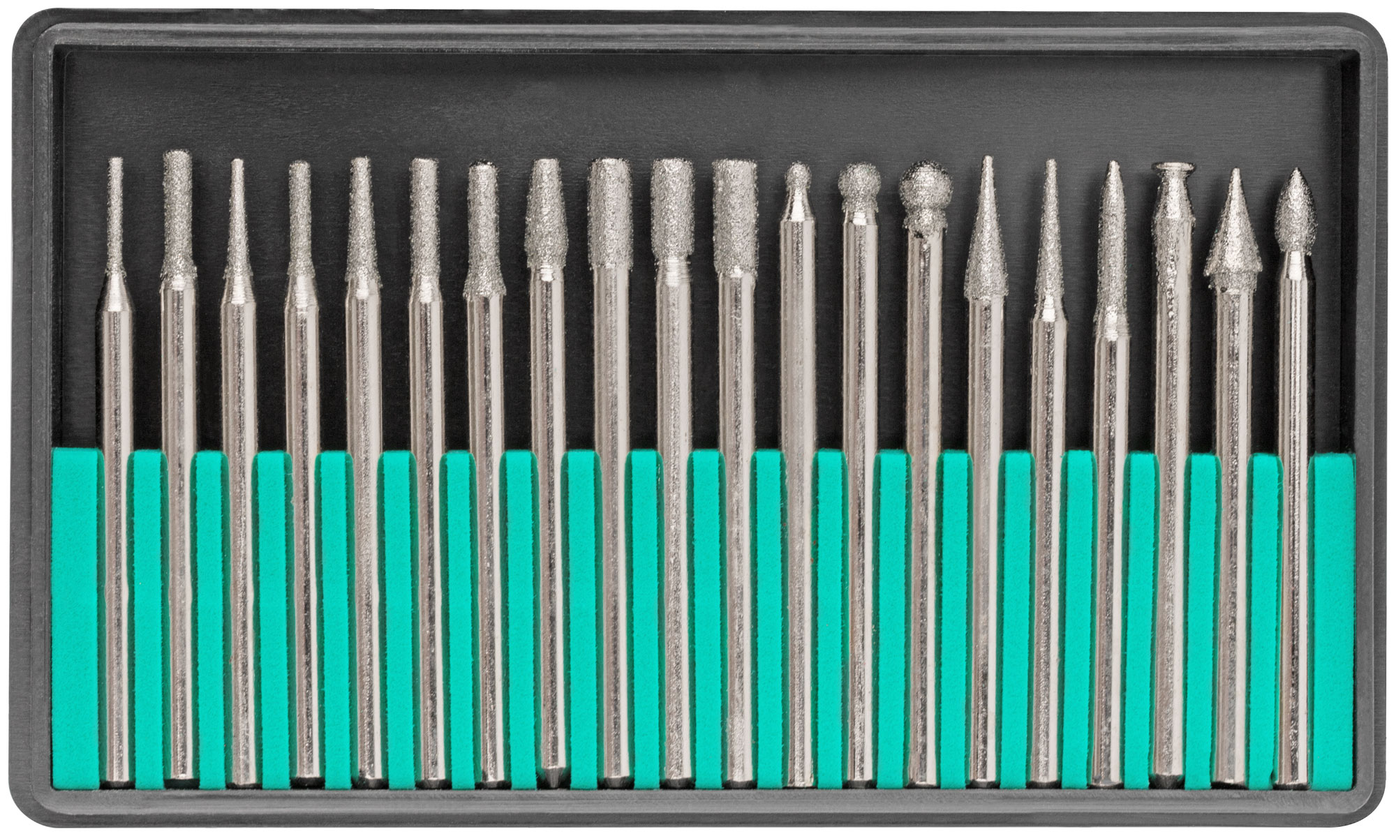 Шарошки, усиленная сталь с алмазным напылением, штифт диам. 3 мм, 20 шт.
