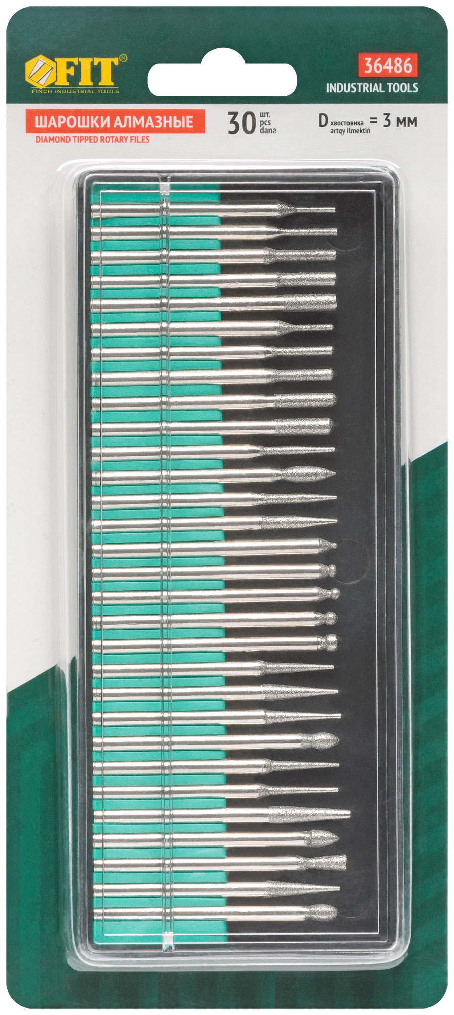 Шарошки, усиленная сталь с алмазным напылением, штифт диам. 3 мм, 30 шт.