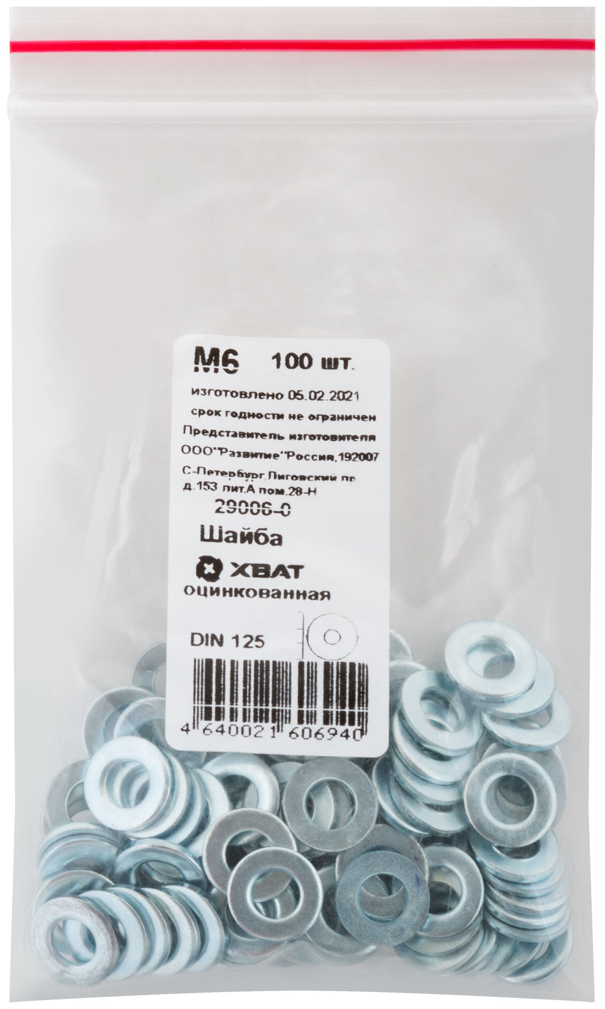 Шайба оцинкованная DIN 125 М6 100 шт. Фасовка
