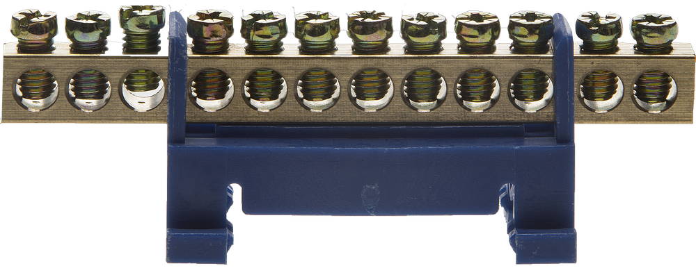 для соединения нулевых рабочих и нулевых защитных проводников. Устанавливается в электрических щитках и электроустановках с напряжением до 400 В.