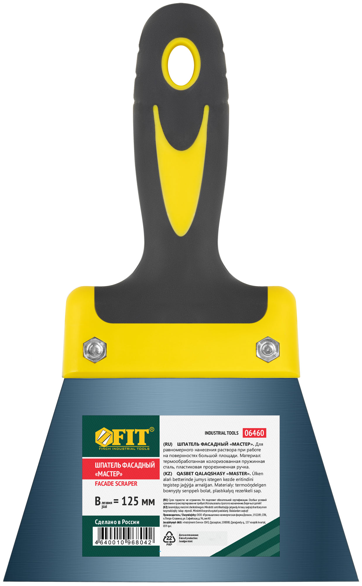 Шпатель фасадный "Мастер", пружинная колоризованная сталь, двухкомпонентная ручка, плоский 125 мм
