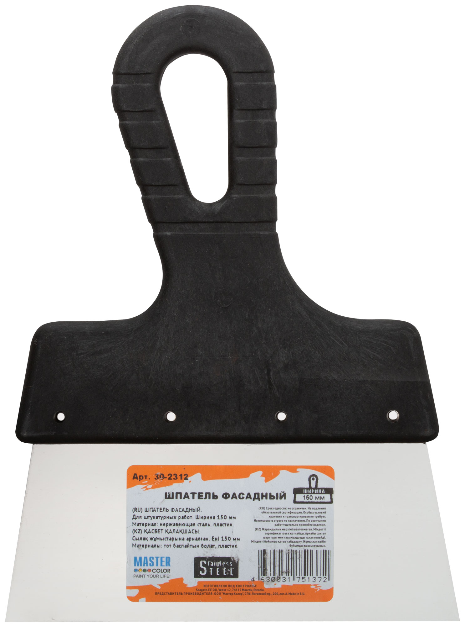 Фасадный шпатель из нержавеющий стали для штукатурных работ. Материал: нержавеющей сталь, пластиковая ручка.