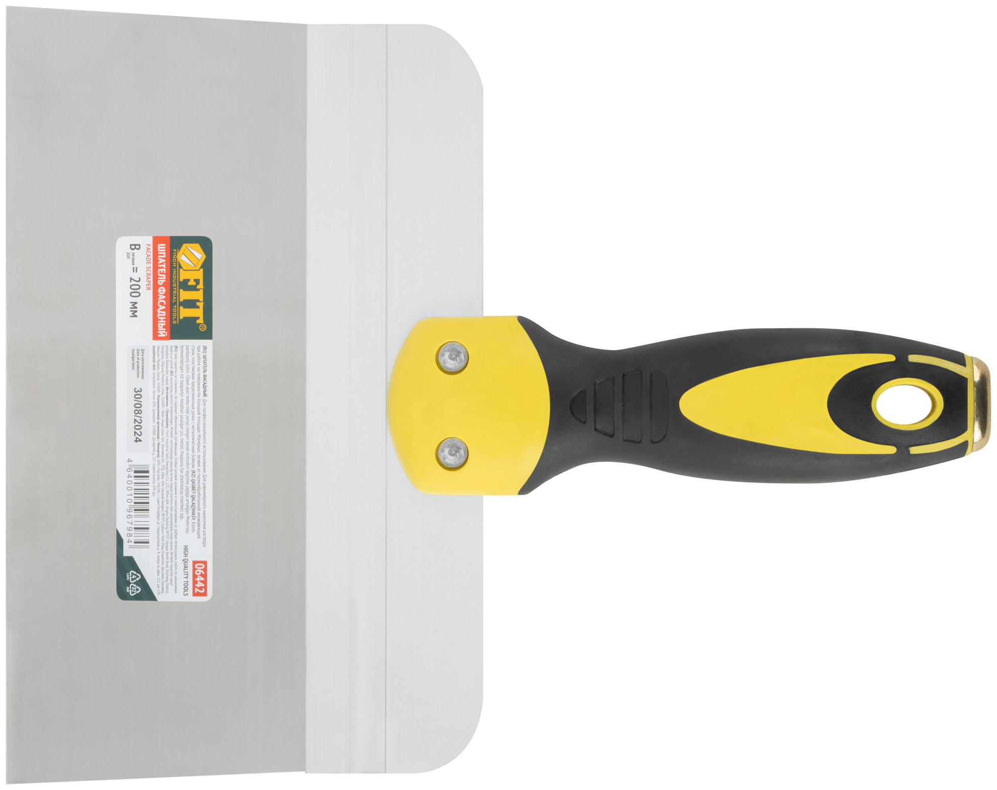 Шпатель фасадный нержавеющий Профи, прорезиненная ручка с метал.бойком 200 мм