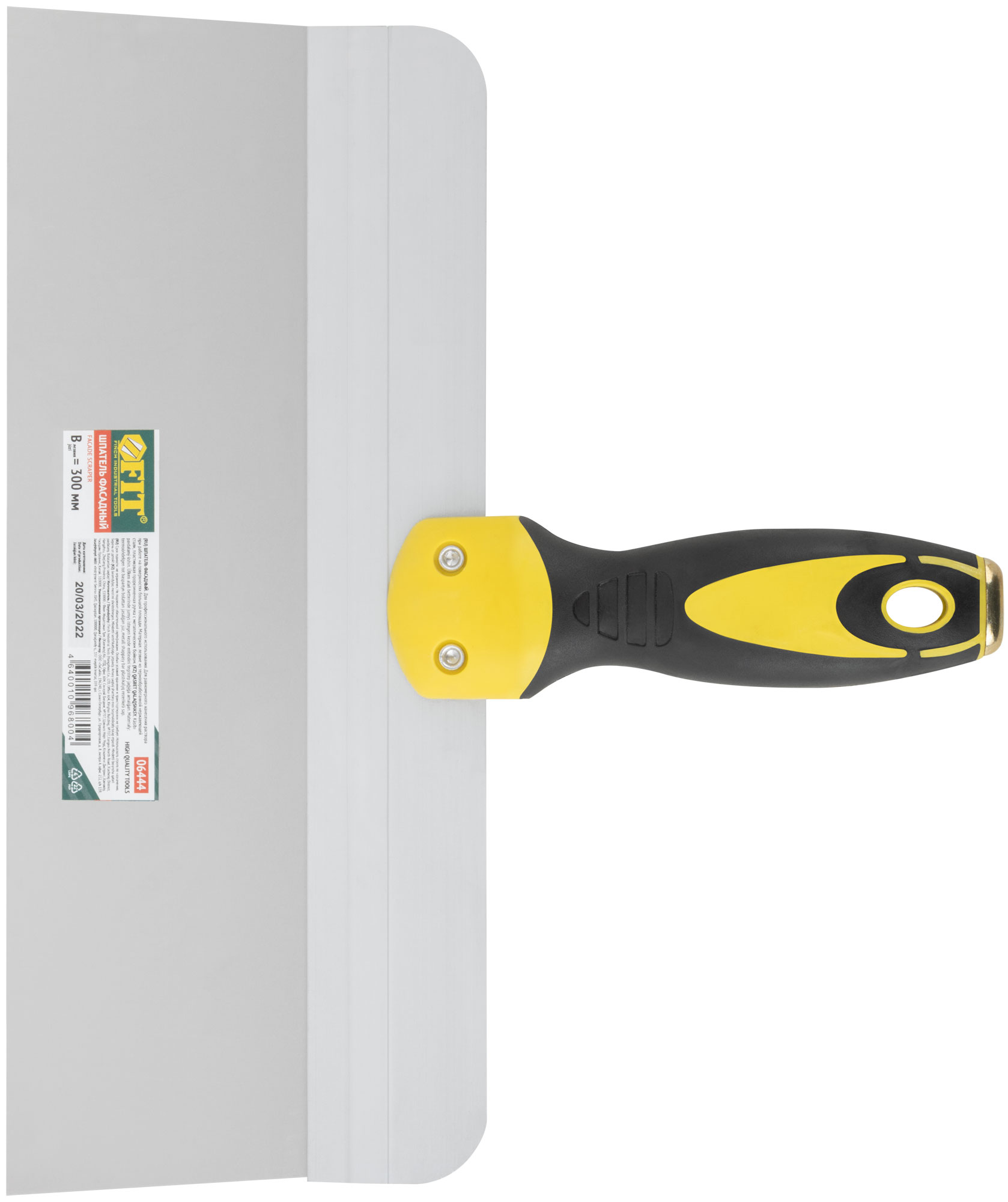 Шпатель фасадный нержавеющий Профи, прорезиненная ручка с метал.бойком 300 мм