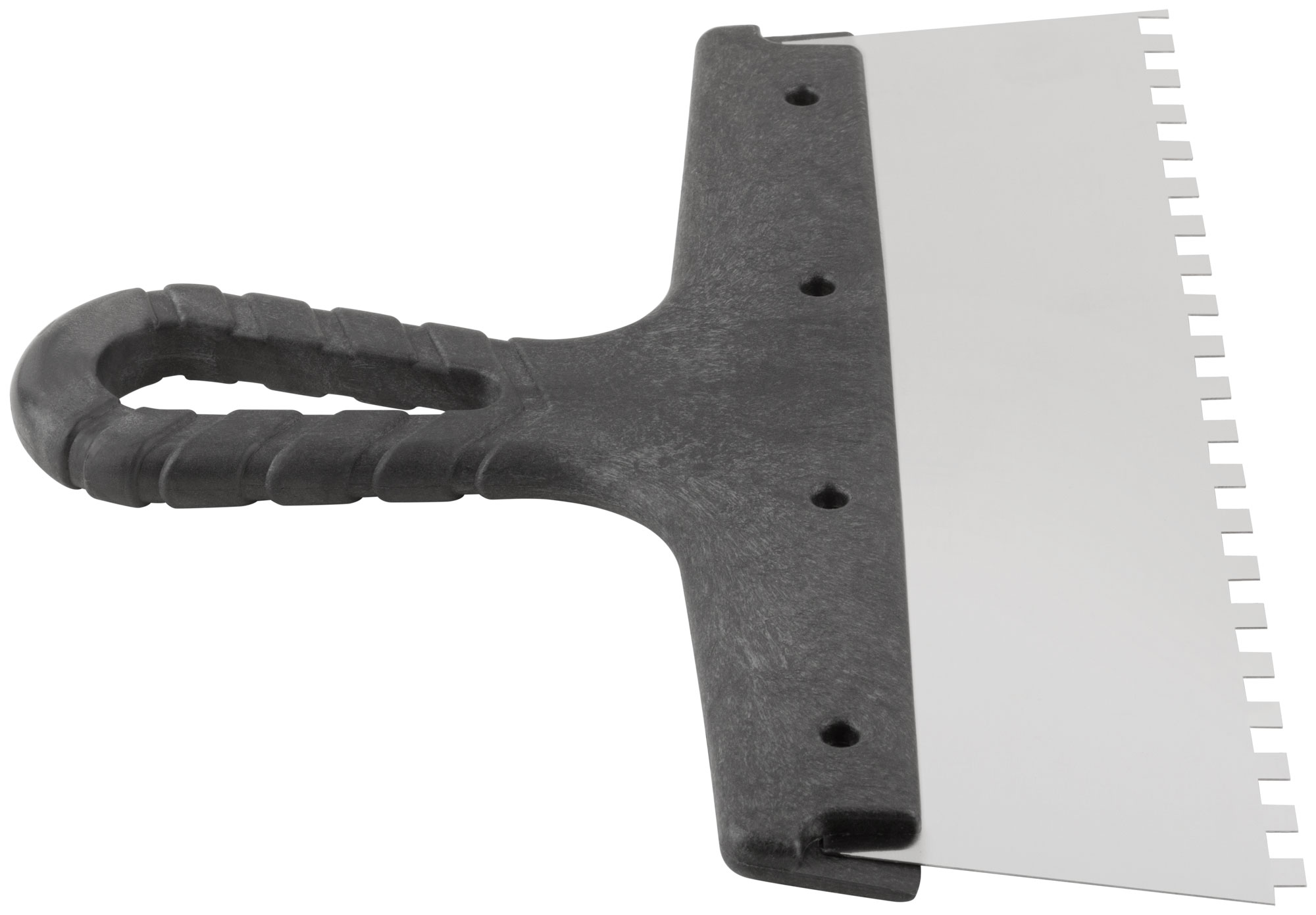 Зубчатый. Для работы на поверхностях большой площади. Материал: нержавеющая сталь, пластиковая ручка.