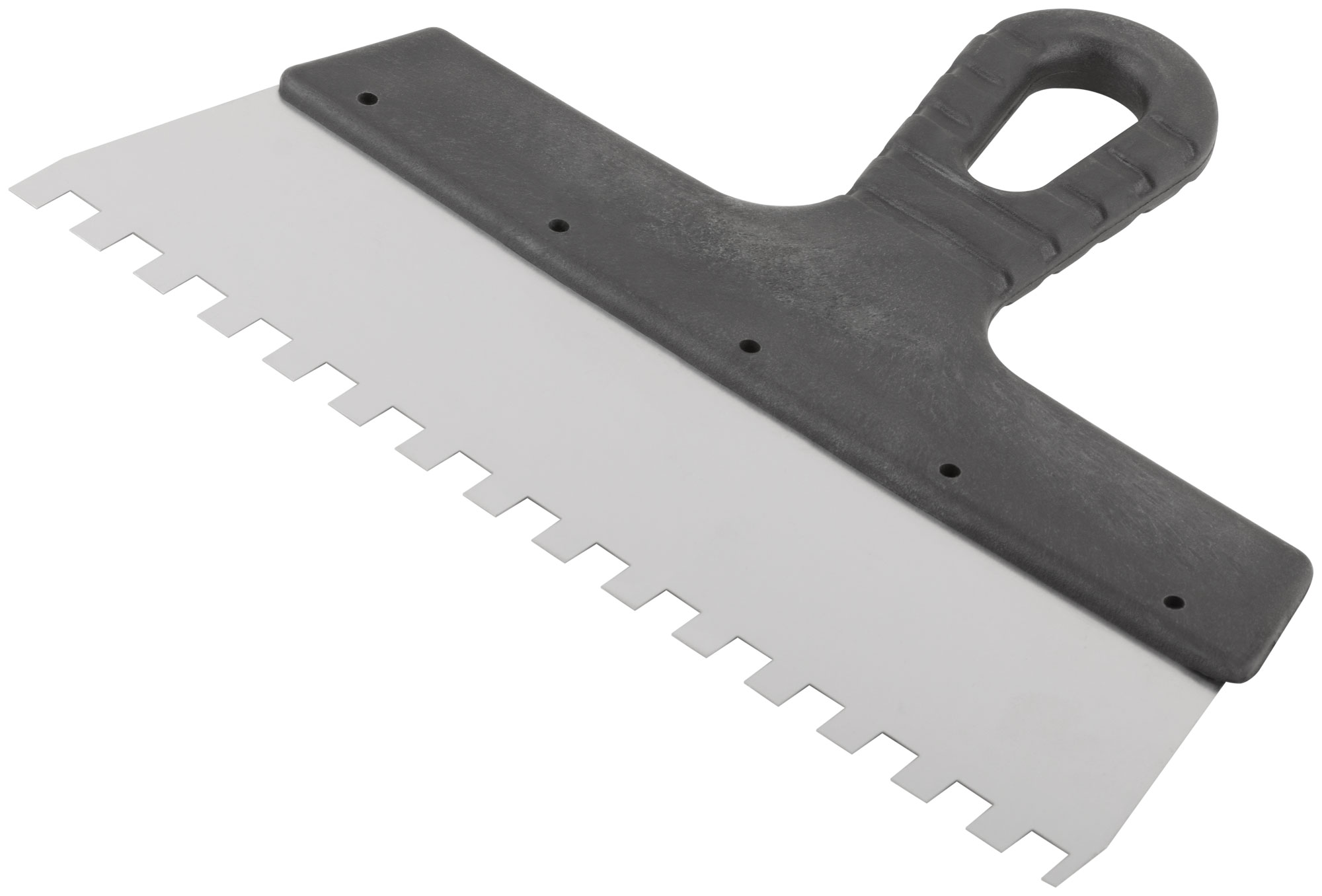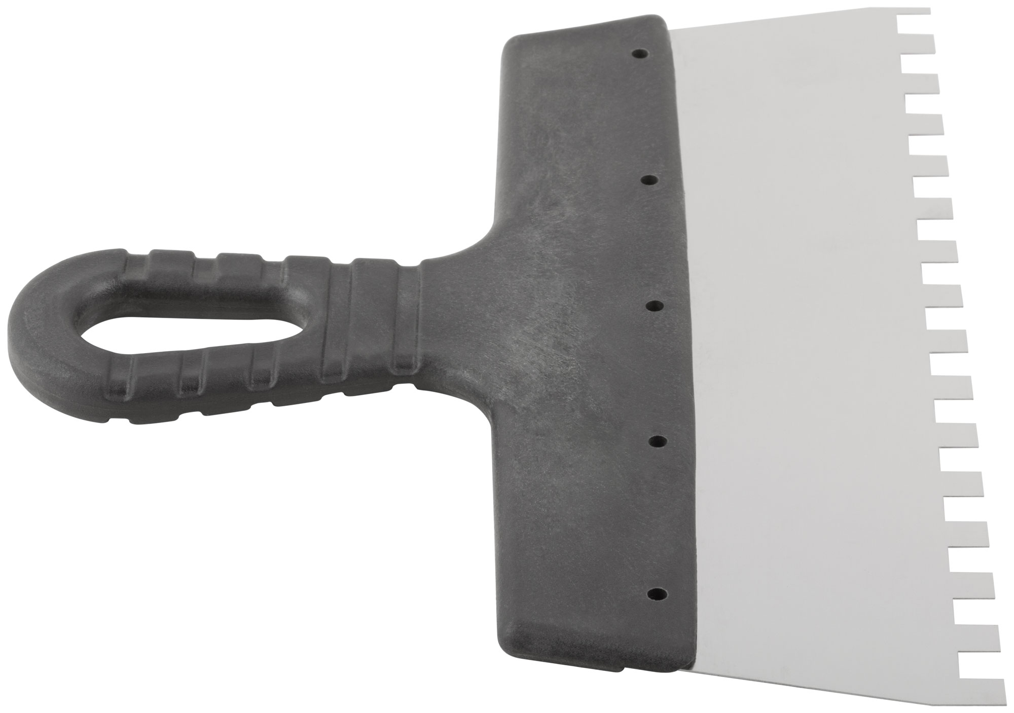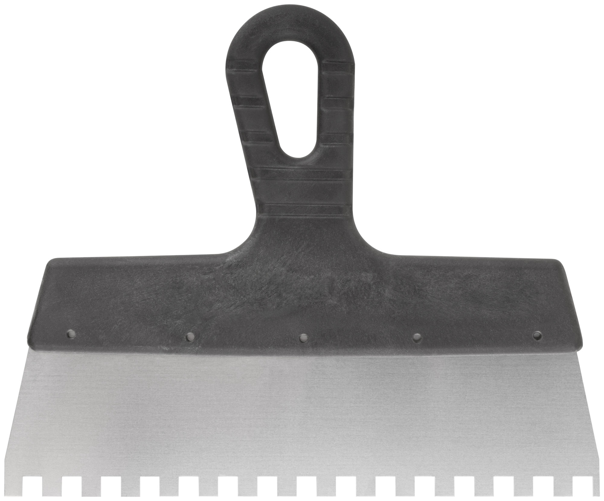 Зубчатый. Для работы на поверхностях большой площади. Материал: нержавеющая сталь, пластиковая ручка.