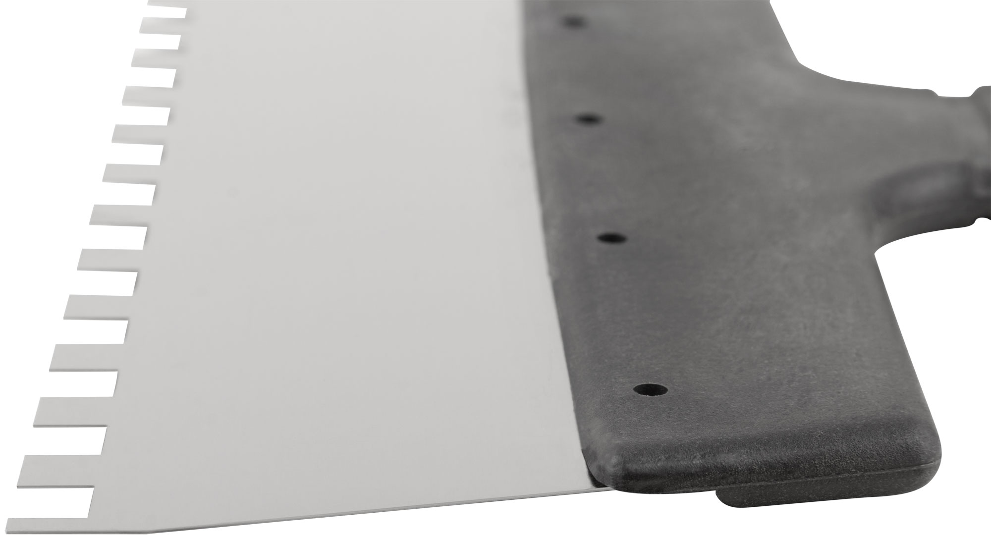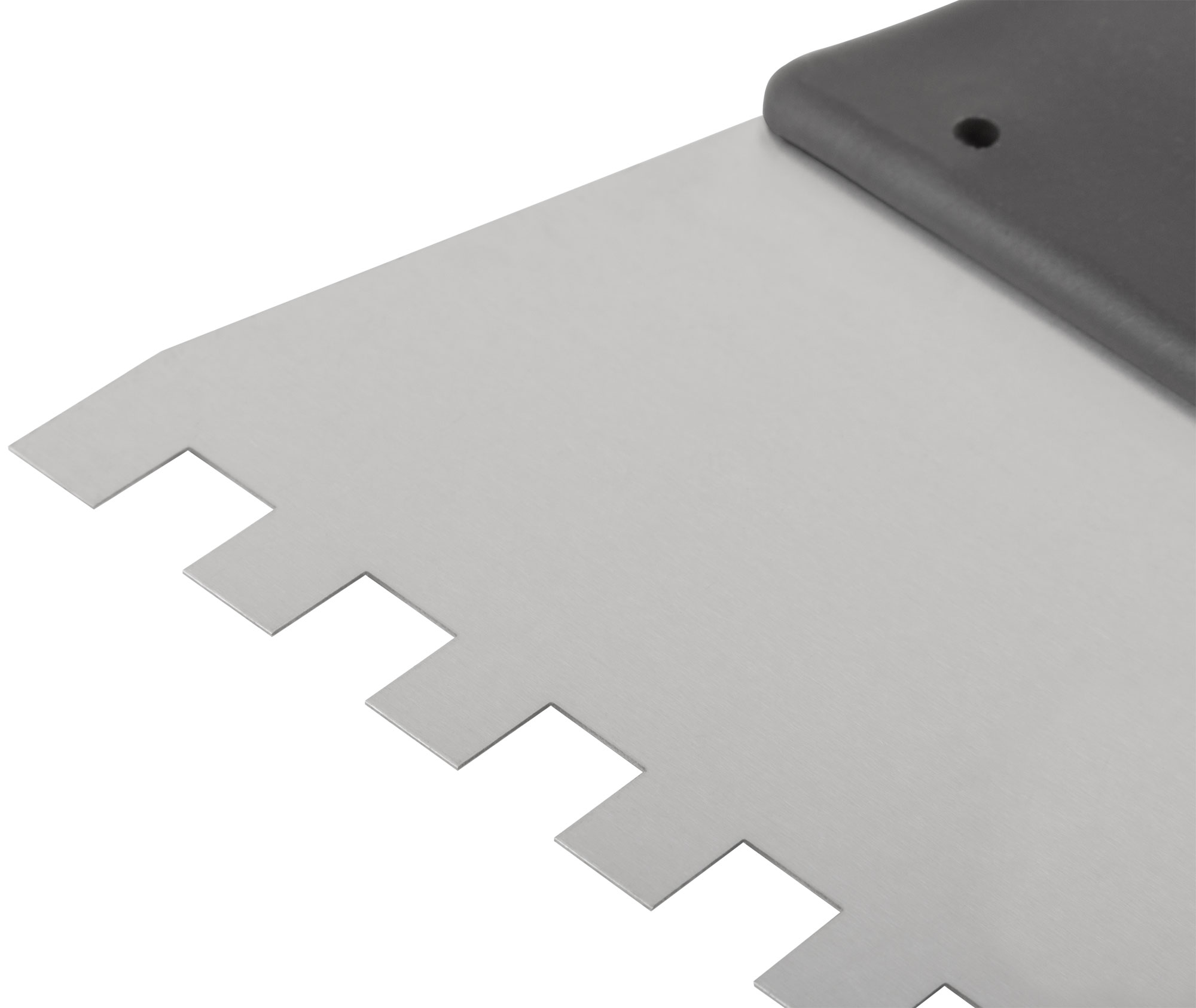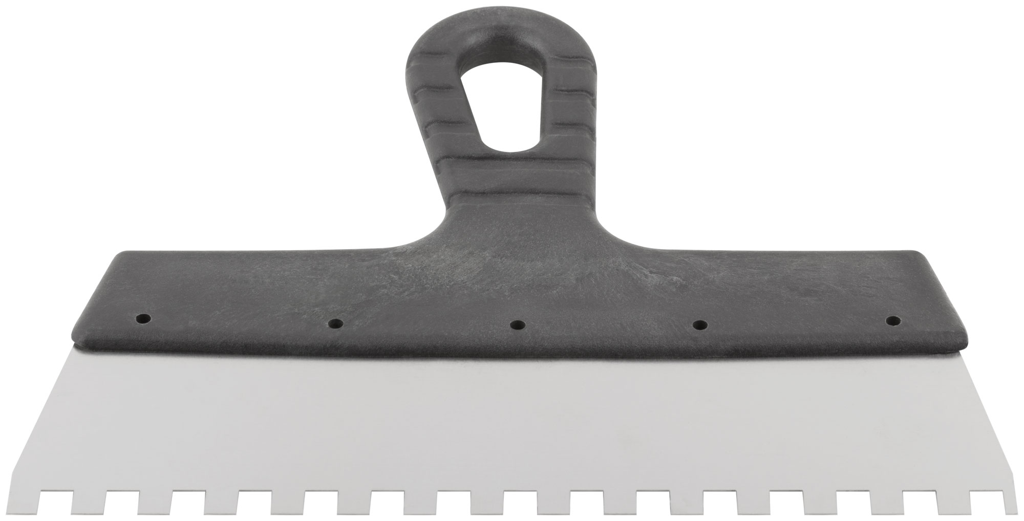 Зубчатый. Для работы на поверхностях большой площади. Материал: нержавеющая сталь, пластиковая ручка.