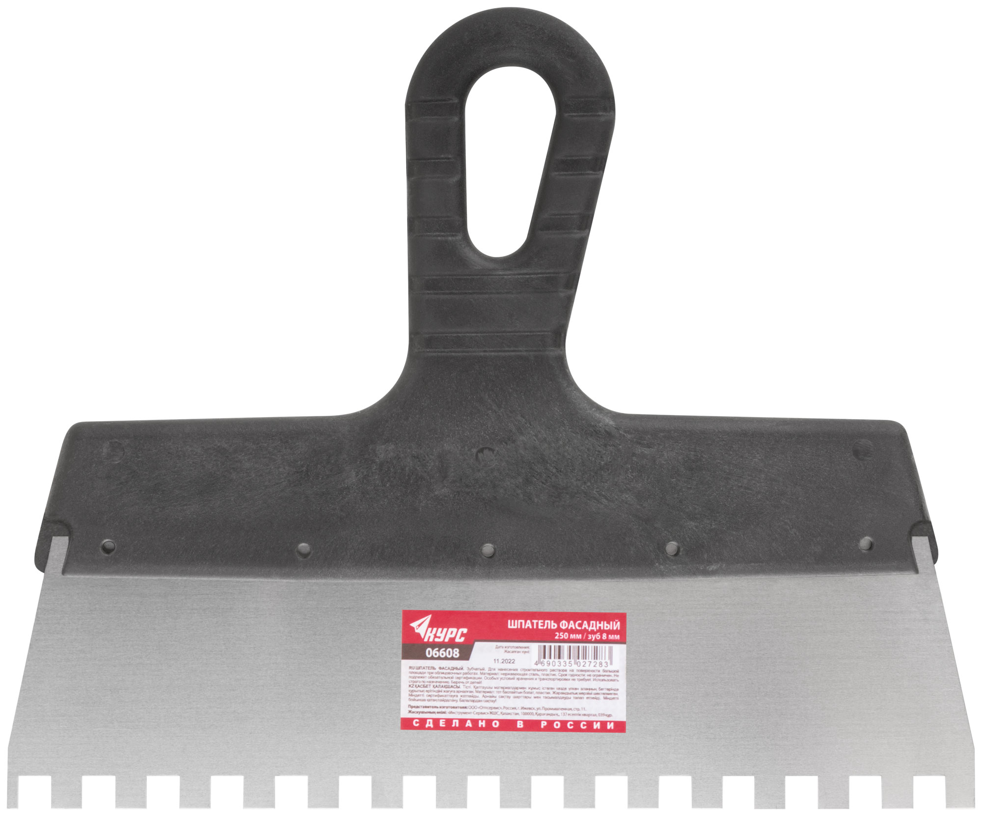Шпатель фасадный нержавеющий зубчатый 250 мм / зуб 8 мм