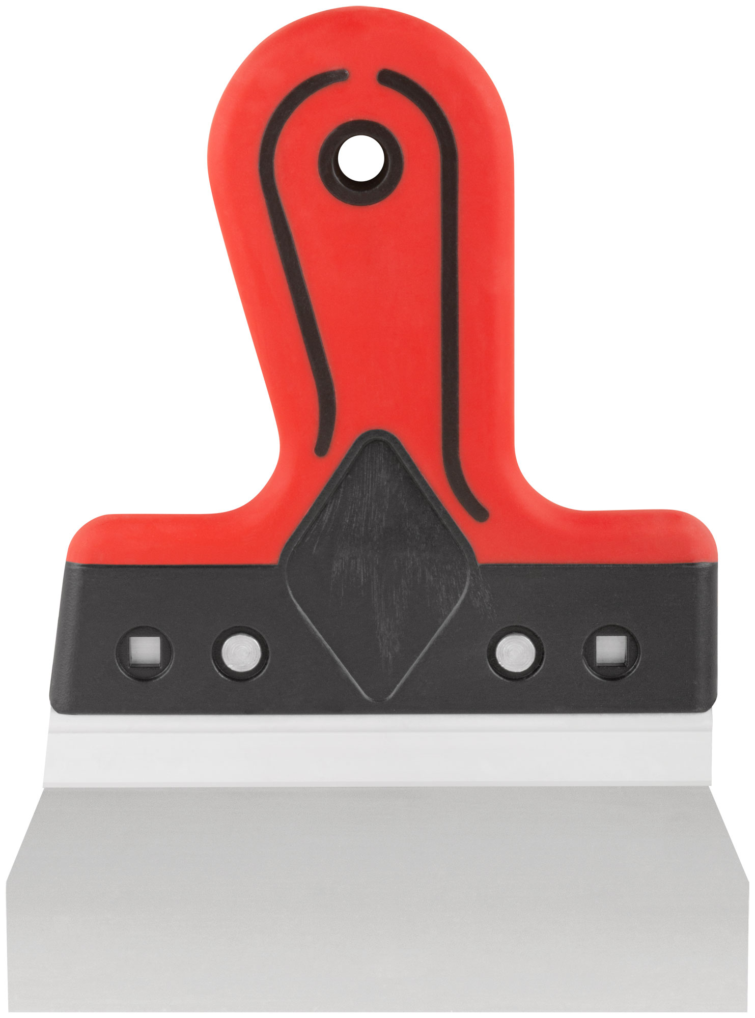 Профи. Для работы на поверхностях большой площади. Материал: лезвие из нержавеющей стали, алюминиевое ребро жесткости, пластиковая прорезиненная ручка.