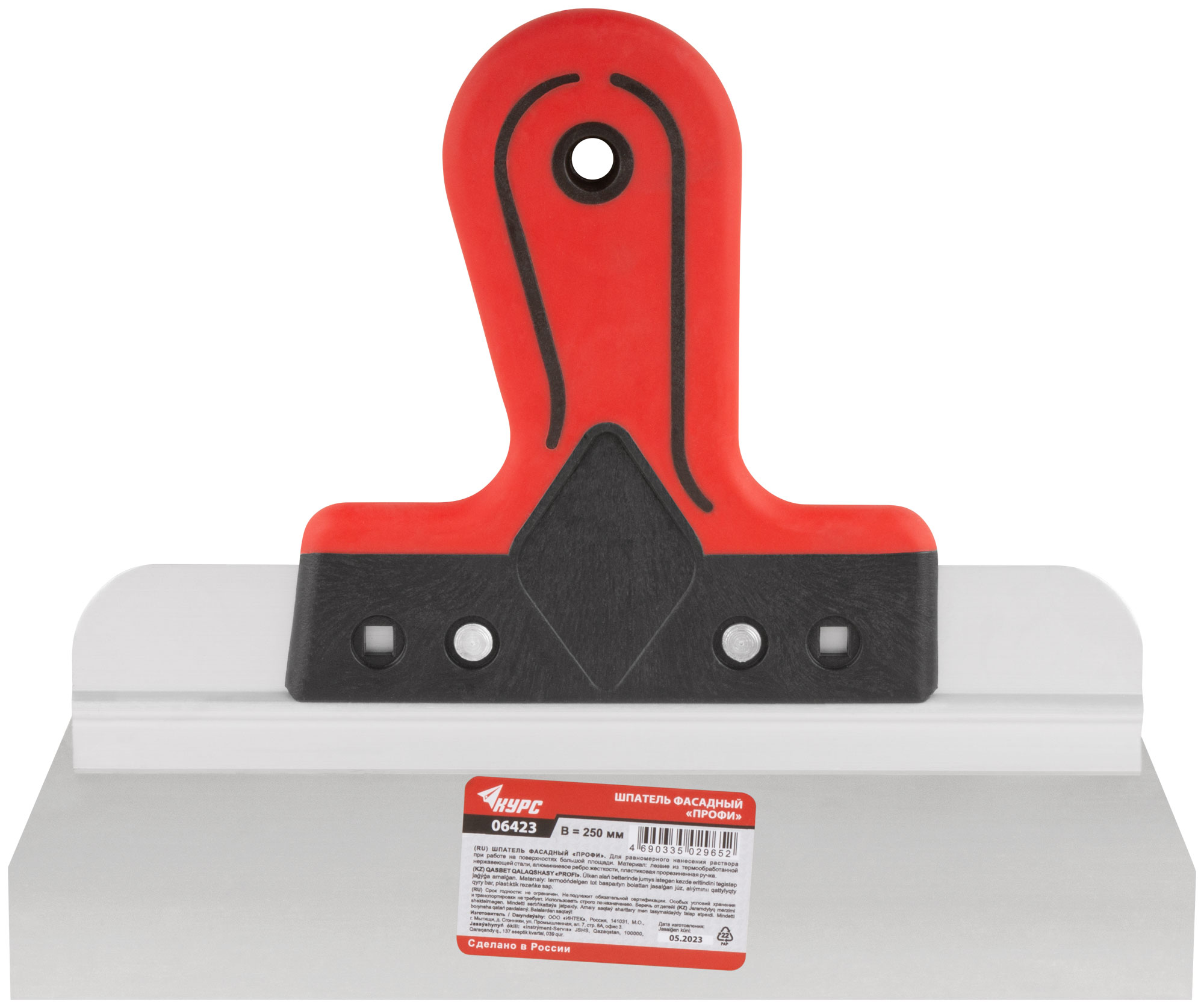 Шпатель фасадный Профи, нержавеющая сталь, прорезиненная ручка 250 мм