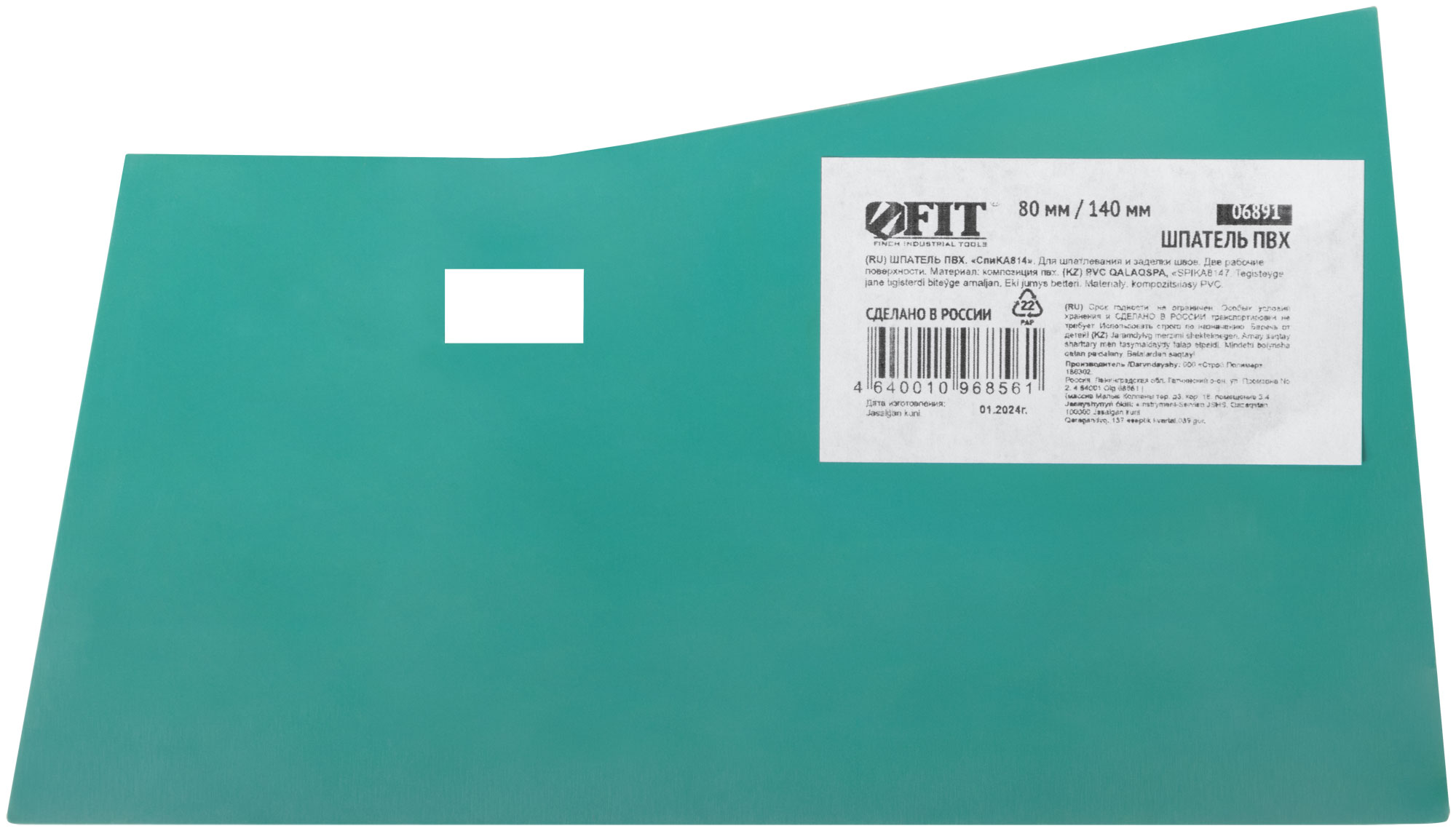 Шпатель, мягкий ПВХ пластик, две рабочие кромки 80 мм / 140 мм