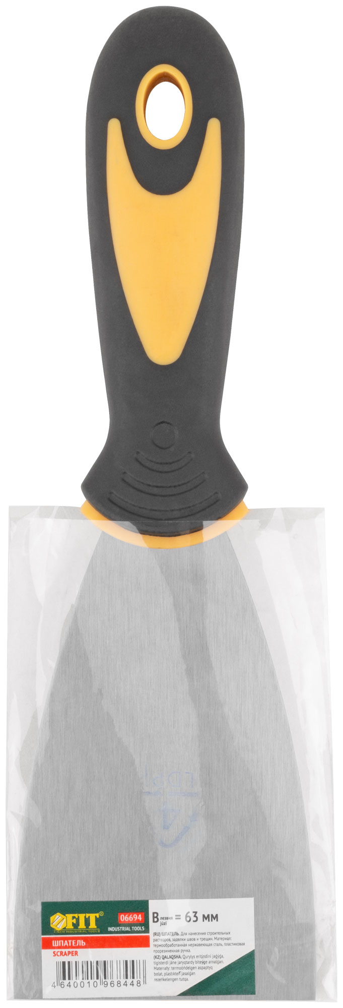 Шпатель, нерж.сталь, прорезиненная ручка 2,5" (63 мм)