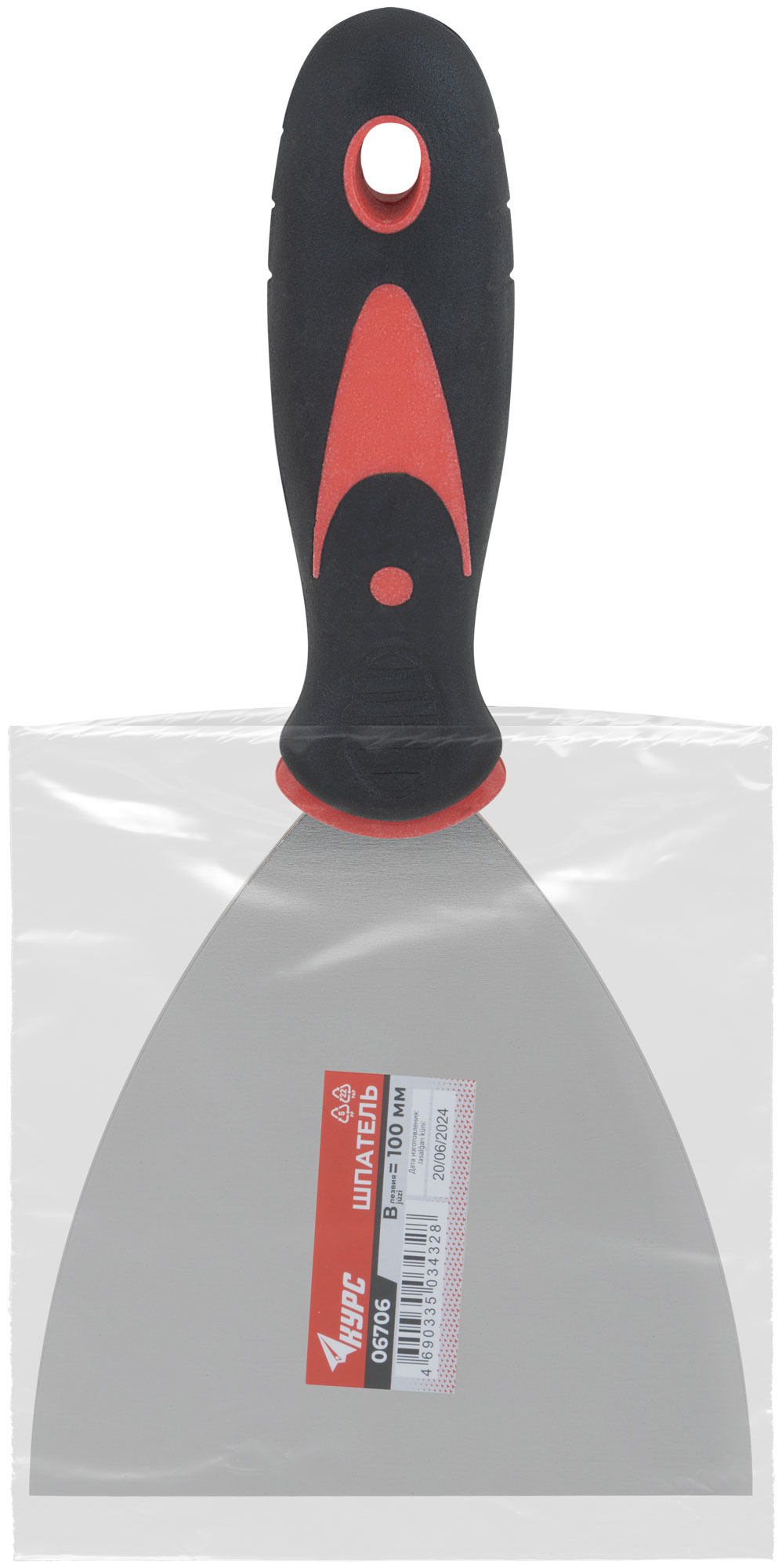 Шпатель, нерж.сталь, прорезиненная ручка 4" (100 мм)