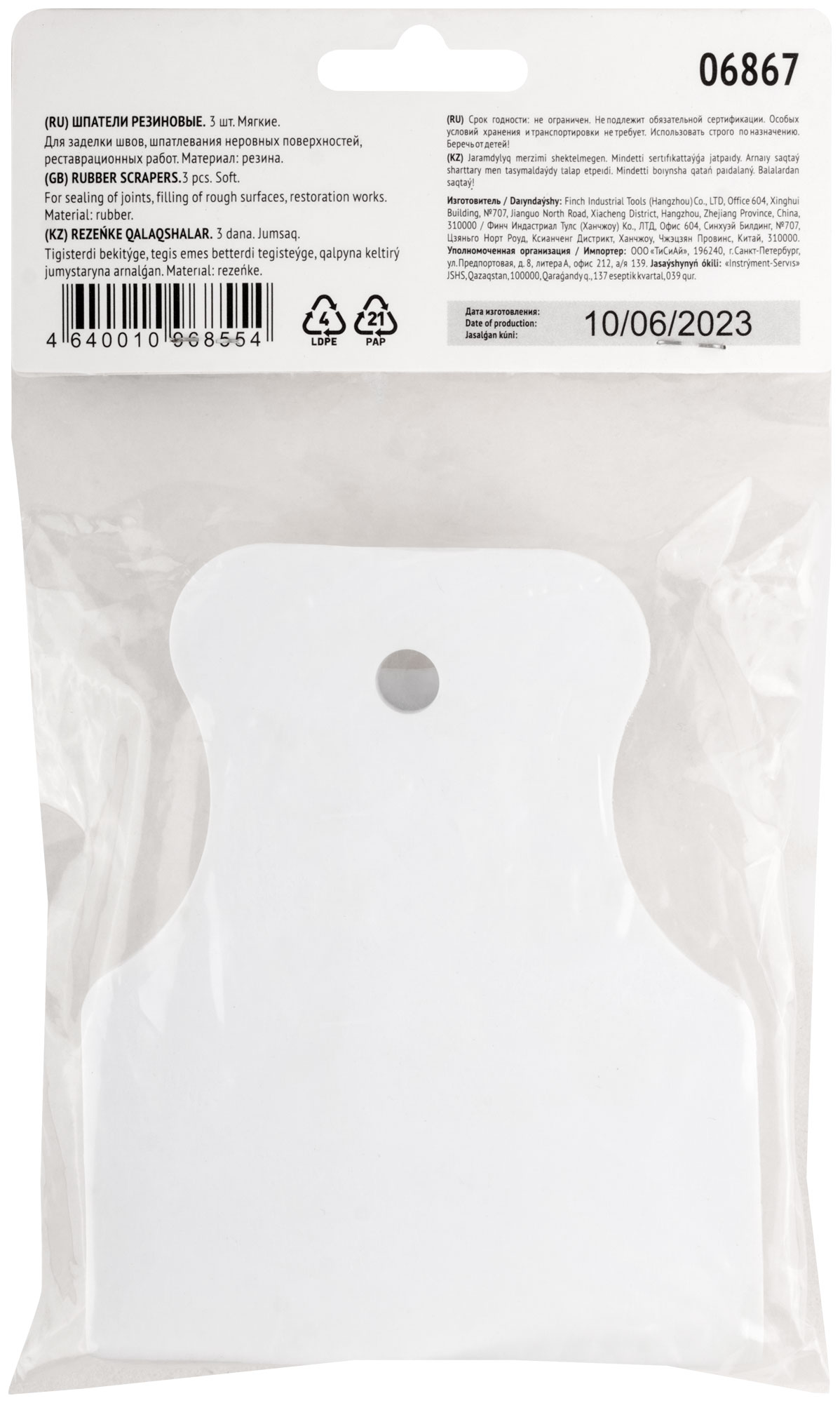 Шпатель резиновый белый, набор 3 шт.(40/60/80 мм)