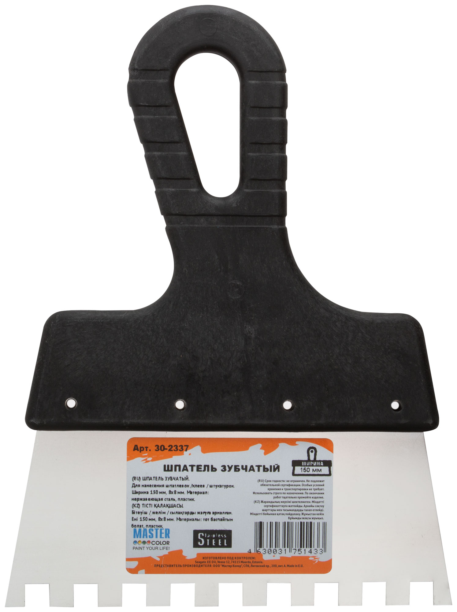 Шпатель зубчатый. Для нанесения клея. Материал: немецкая нержавеющая сталь, пластиковая ручка.