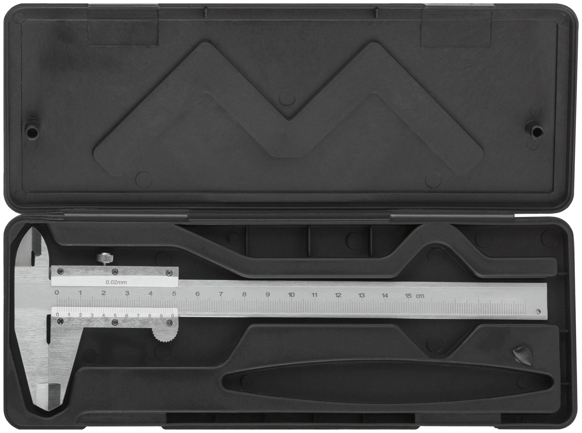 Для наружных и внутренних измерений. Точность:0,02 мм. В пластиковом футляре. Материал: инструментальная сталь с:хромированным покрытием.