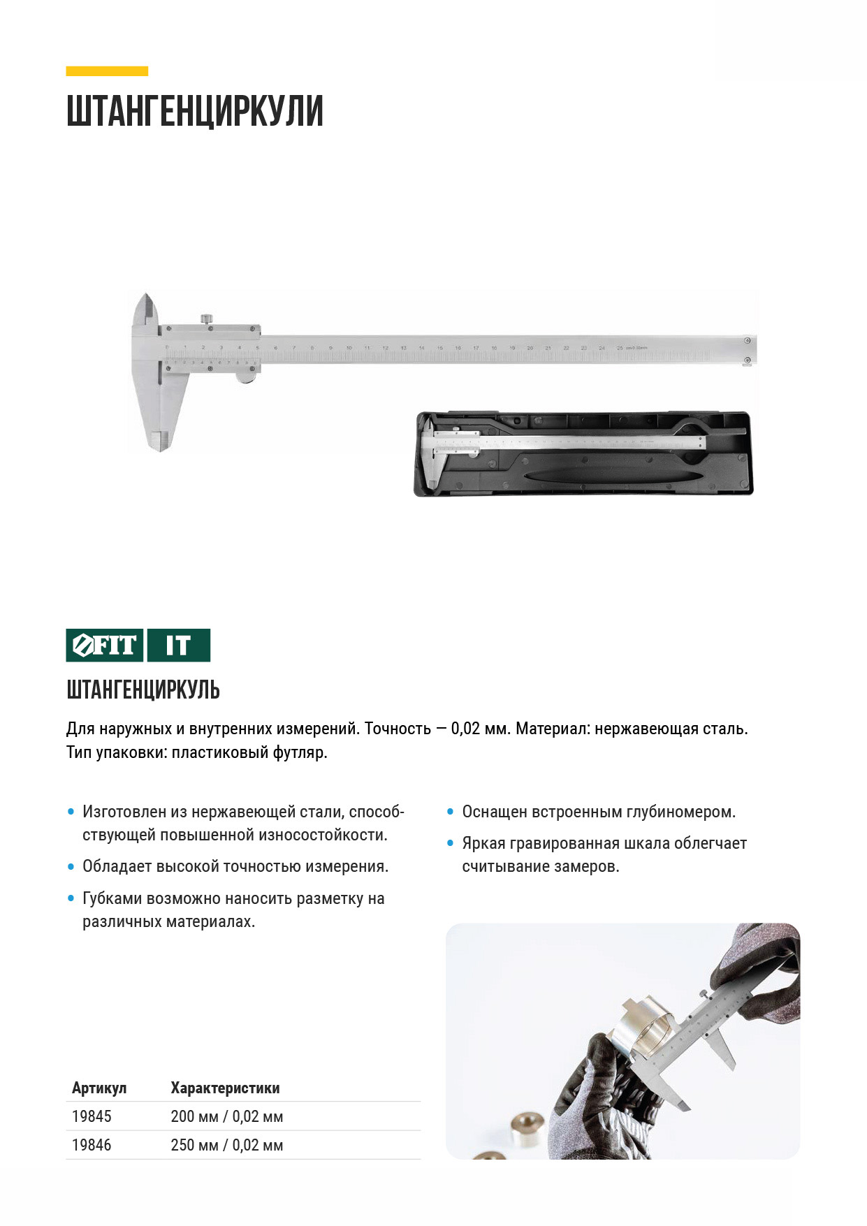 Для наружных и внутренних измерений. Точность 0,02 мм. В пластиковом футляре. Материал: нержавеющая сталь .