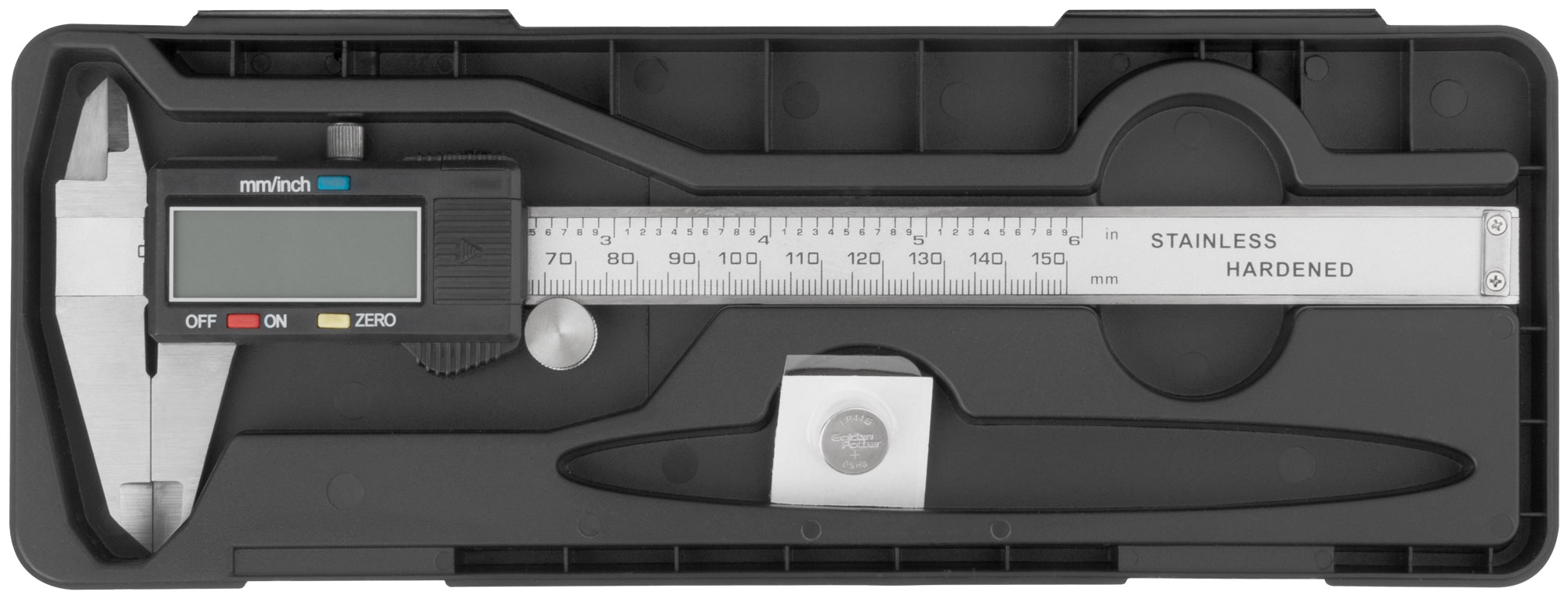 Для наружных и внутренних измерений. С электронным отсчетом. Точность 0,02 мм. В пластиковом футляре. Питание: батарейка SR44 (входит в комплект поставки). Материал: нержавеющая сталь.