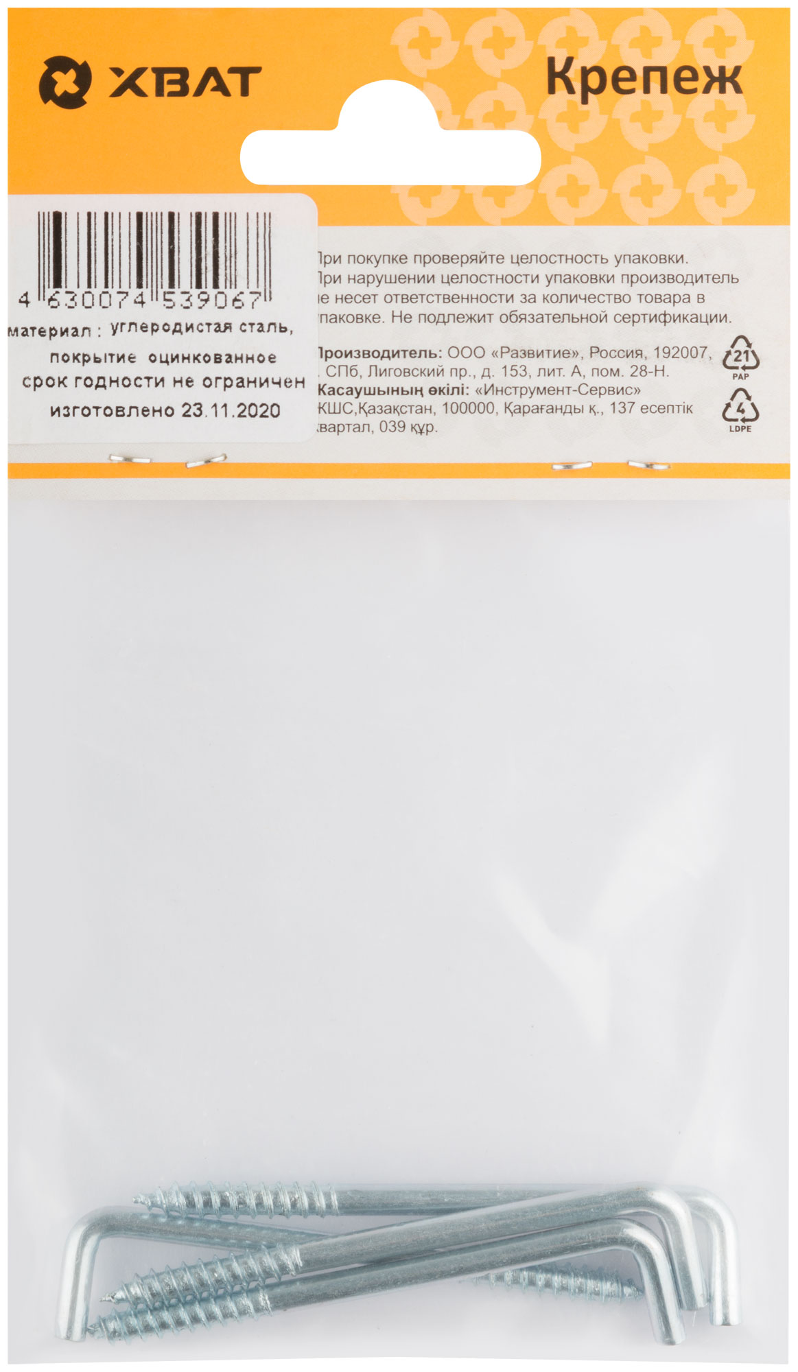 Шуруп-крючок оцинкованный 4,0 х 60 (фасовка 4 шт.)