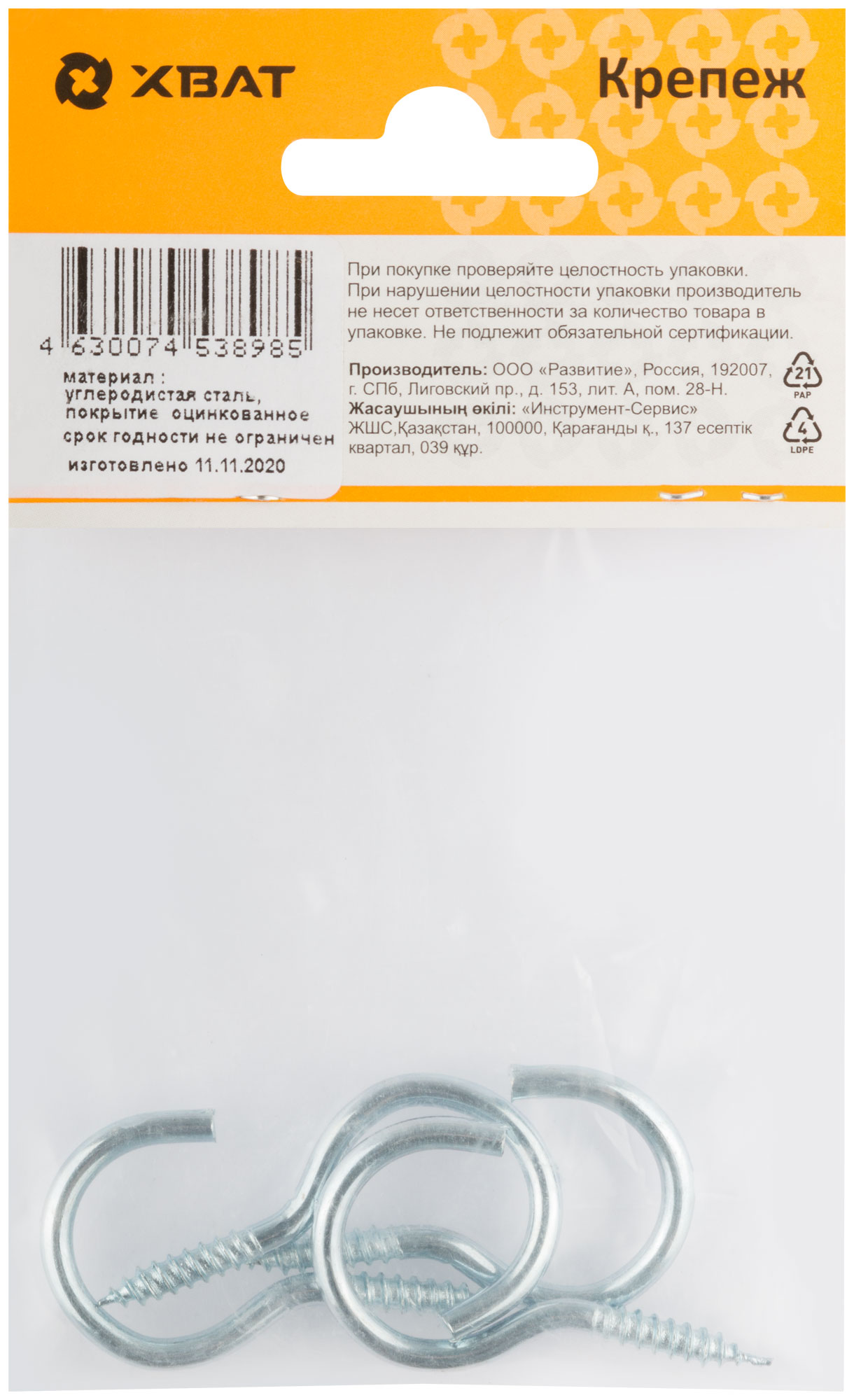 Шуруп-полукольцо оцинкованный 3,5 х 45 (фасовка 4 шт.)