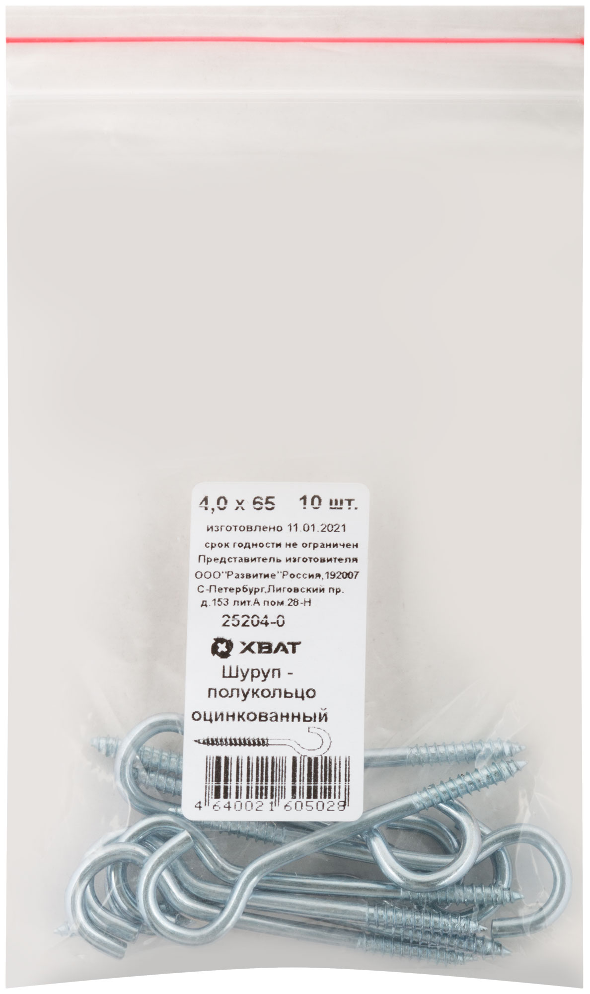 Шуруп-полукольцо оцинкованный 4,0 х 65, 10 шт. Фасовка