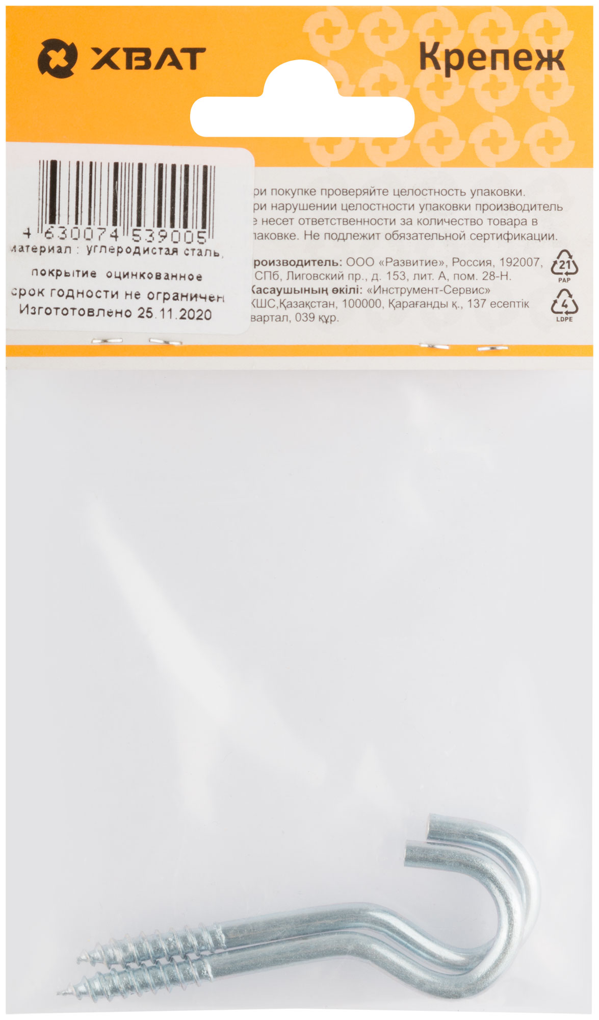 Шуруп-полукольцо оцинкованный 5,0 х 65 (фасовка 2 шт.)