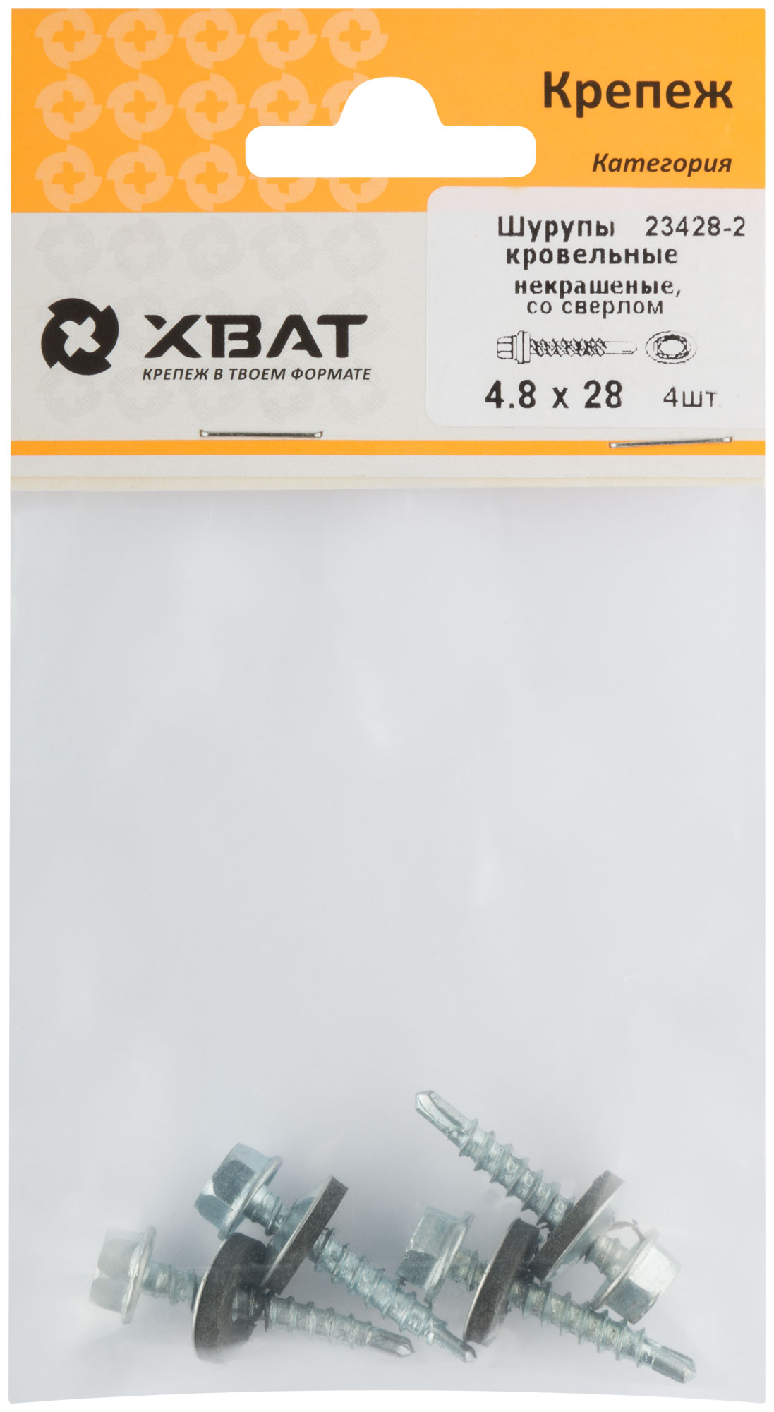 Шурупы кровельные некрашеные, со сверлом 4.8 х 28 ( фасовка 4 шт.)