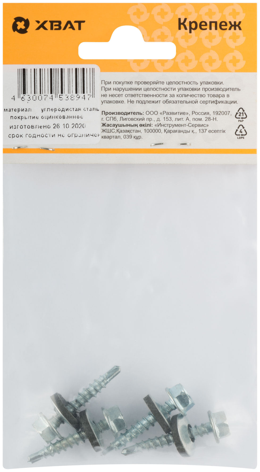 Стальные саморезы с шестигранной оцинкованной головкой со сверловидным наконечником, укомплектованы шайбой с резиновой прокладкой. Кровельные саморезы для крепления кровельных материалов к деревянной обрешетке (диаметр самореза 4,8мм) и к металлическим конструкциям (диаметр самореза 5,5 мм и 6,3 мм).