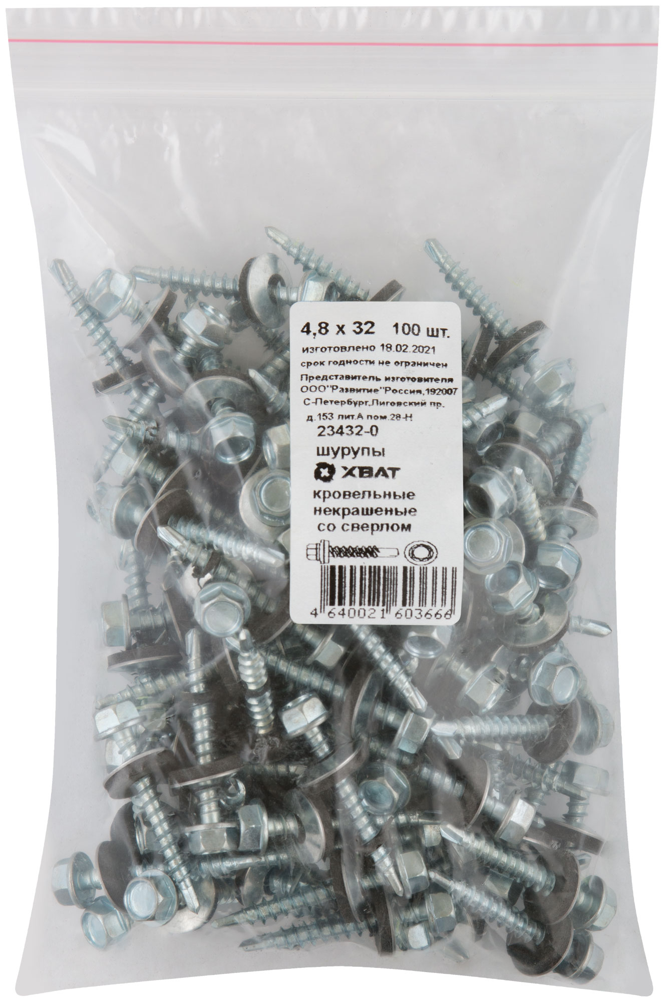 Шурупы кровельные некрашеные, со сверлом 4.8 х 32 100 шт. Фасовка