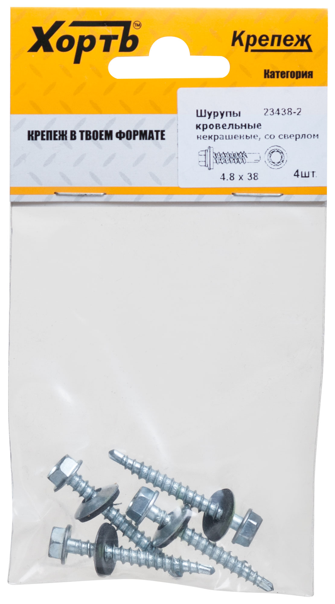 Шурупы кровельные некрашеные, со сверлом 4.8 х 38 ( фасовка 4 шт.)