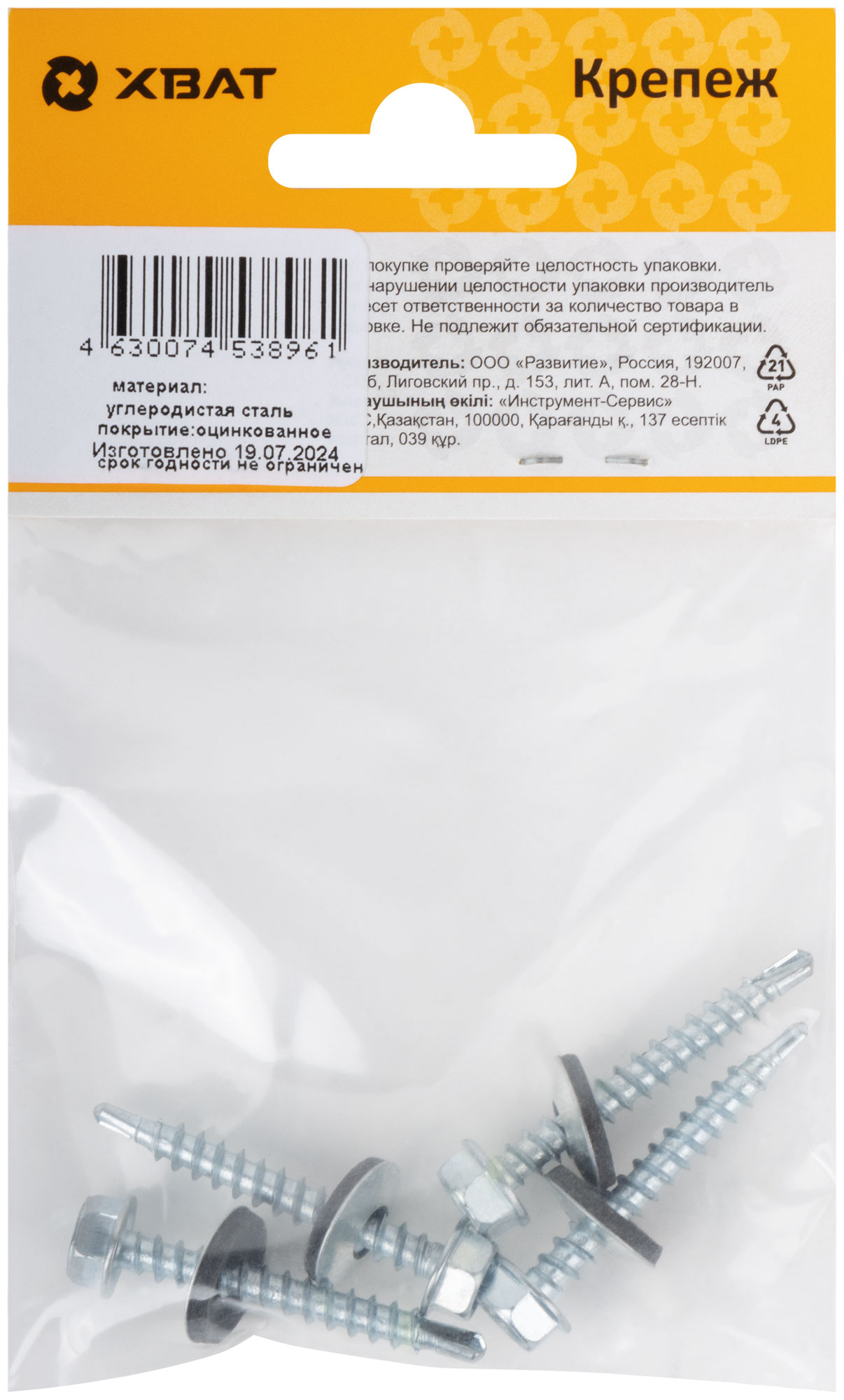 Стальные саморезы с шестигранной оцинкованной головкой со сверловидным наконечником, укомплектованы шайбой с резиновой прокладкой. Кровельные саморезы для крепления кровельных материалов к деревянной обрешетке (диаметр самореза 4,8мм) и к металлическим конструкциям (диаметр самореза 5,5 мм и 6,3 мм).